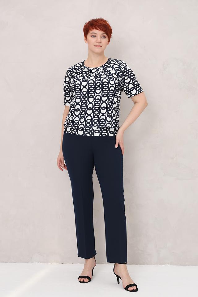 Модель имеет прямой крой, короткие рукава и округлый вырез горловины. Блуза выполнена из высококачественной вискозы с добавлением эластана, что делает её приятной к телу, мягкой и эластичной.