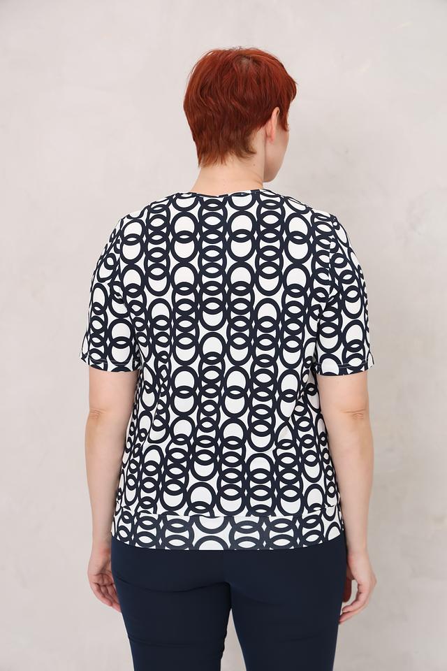 Эта блуза от Frank Walder – отличный выбор для создания элегантного и современного образа. Блуза выполнена в белом цвете с выразительным геометрическим принтом в тёмно-синих тонах.
