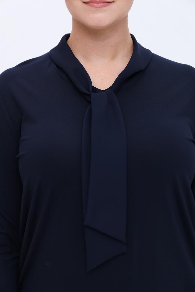 Темно-синяя блуза Frank Walder из вискозы с элегантной завязкой на воротнике. Эта модель с рукавом 3/4 станет отличным дополнением к вашему гардеробу, сочетая в себе комфорт и стиль. Состав: вискоза 93%, эластан 7%