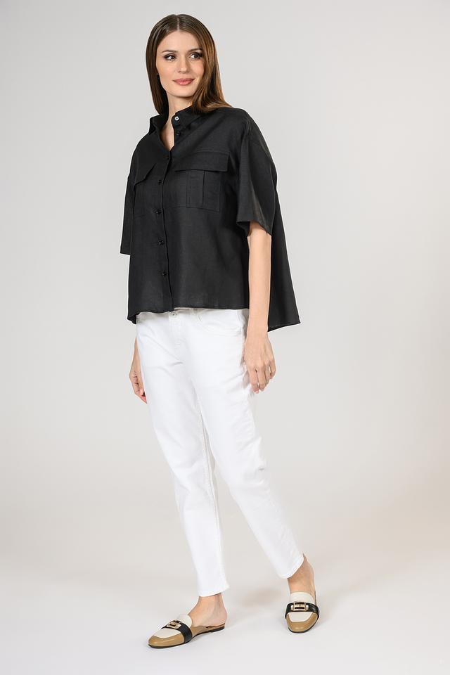Чёрная блуза Giorgio Grati из 100% льна – стильное и комфортное решение для создания повседневных образов. Прямой крой и короткие рукава делают эту модель лёгкой и свободной, а накладные карманы добавляют функциональности. Состав: лен 100%
