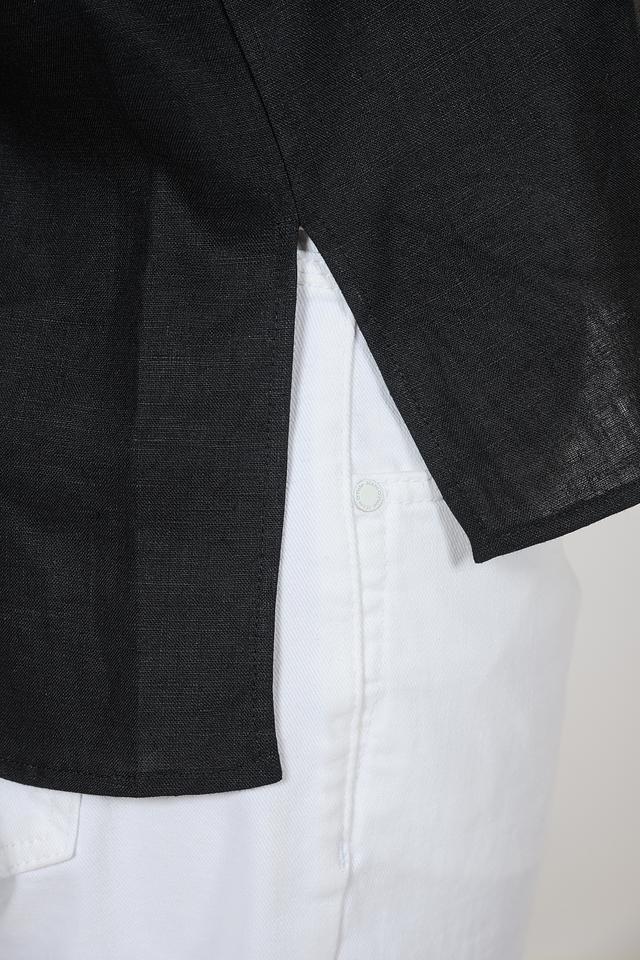 Эта блуза от Giorgio Grati выполнена из высококачественного льна, что обеспечивает комфорт и воздухопроницаемость в жаркую погоду. Классический чёрный цвет делает её универсальной основой для любого гардероба.
