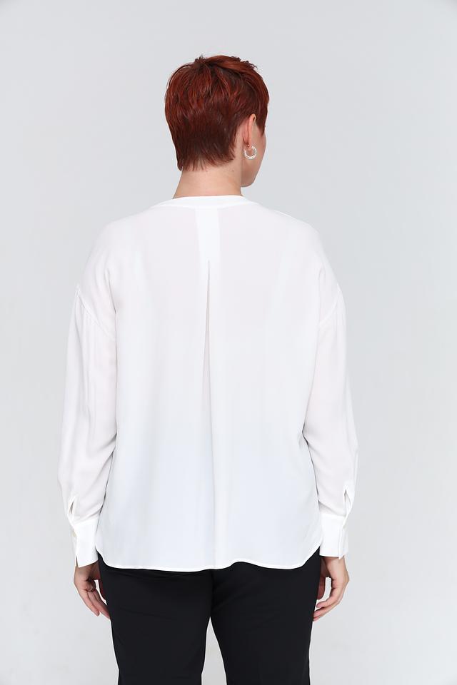 Белая блуза от Luisa Cerano выполнена из лёгкой ткани на основе ацетата и шёлка. Модель имеет свободный крой, длинные рукава и два накладных кармана на груди. Состав: ацетат 69%, шелк 31%