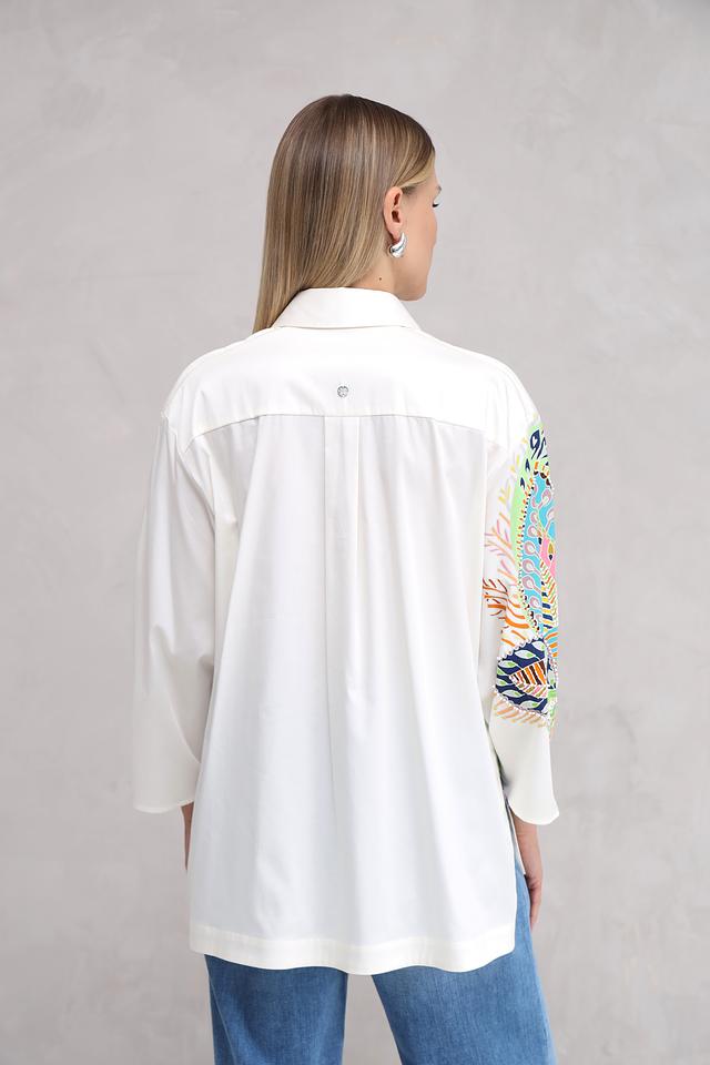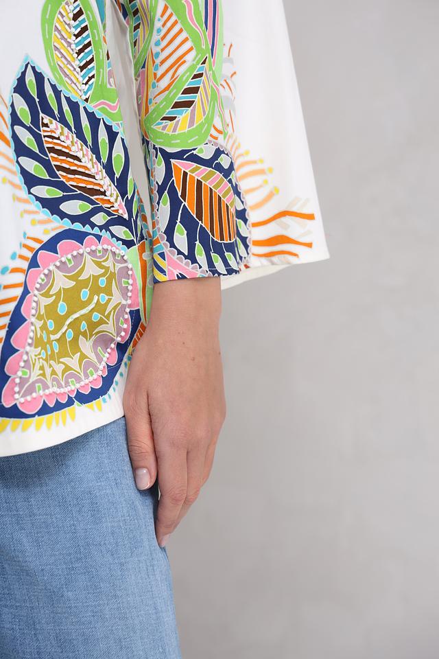 Эта блуза от Marc Cain – идеальный выбор для создания яркого и запоминающегося образа. Выполнена в белом цвете и украшена красочным цветочным принтом, который придает ей неповторимый шарм.