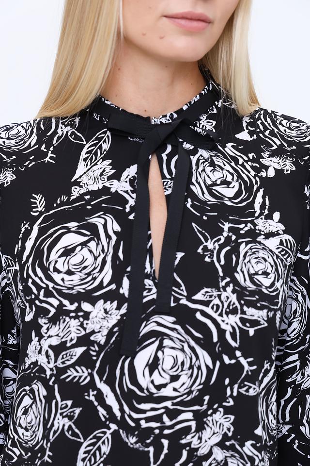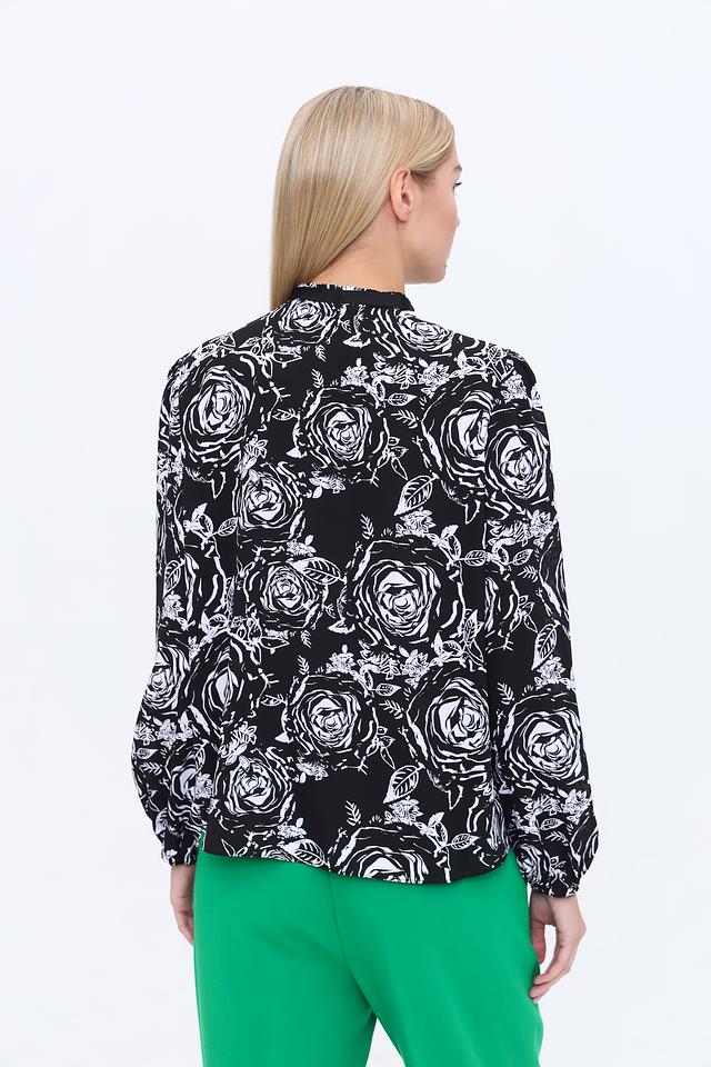 Эта изысканная блуза от Marc Cain станет прекрасным дополнением к вашему гардеробу. Блуза выполнена в чёрном цвете и украшена ярким принтом из белых роз, что придает ей романтичный и женственный вид.