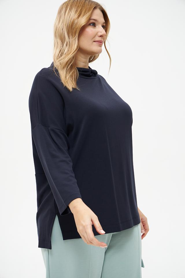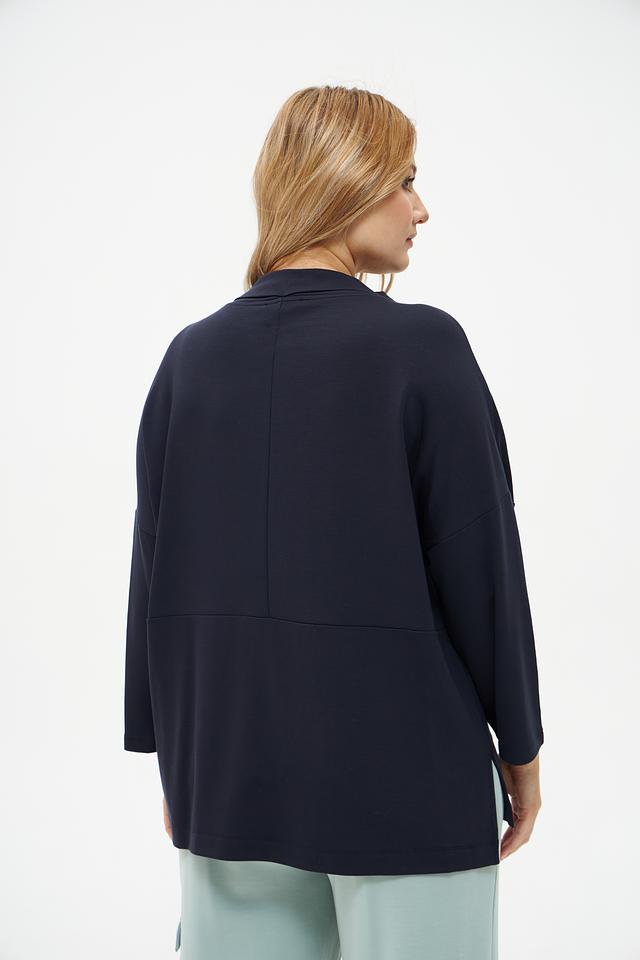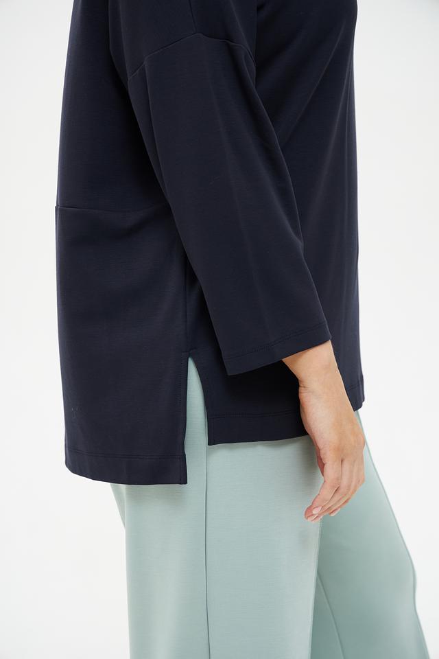 Блуза имеет удобную горловину и рукава три четверти, что делает ее подходящей для различных сезонов. Свободный крой обеспечивает свободу движений и комфорт в течение всего дня.