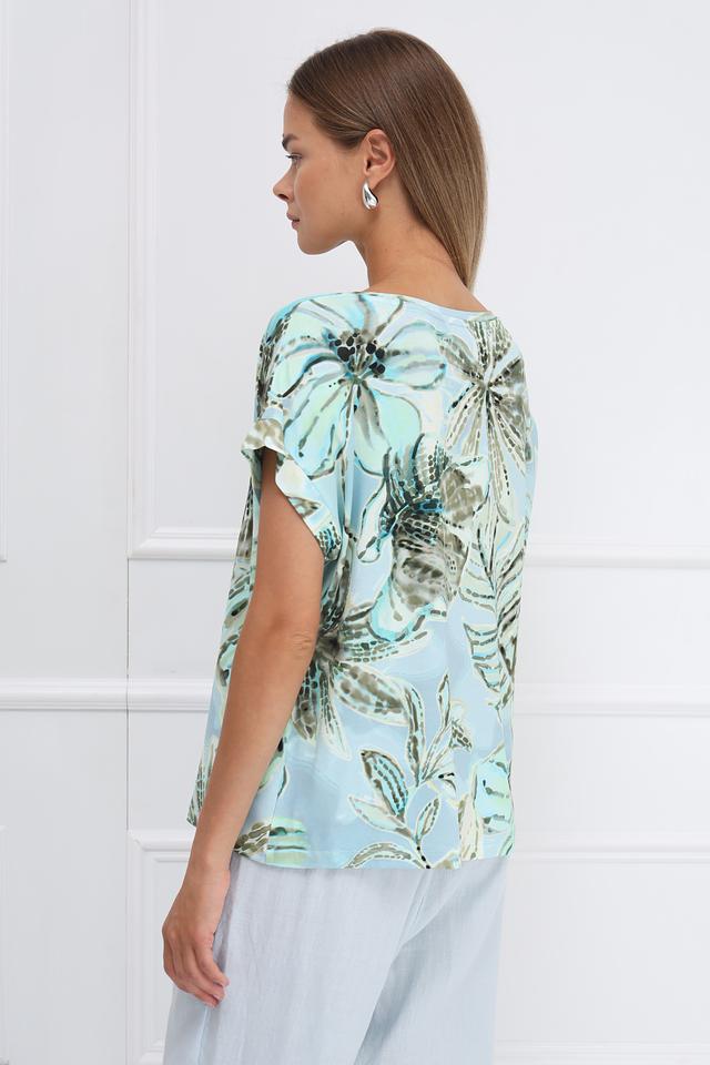 Блуза Monari светло-голубого цвета с ярким цветочным принтом станет отличным дополнением к вашему гардеробу. Модель выполнена из мягкой вискозы с добавлением эластана, что обеспечивает комфорт и свободу движений. Состав: вискоза 95%, эластан 5%