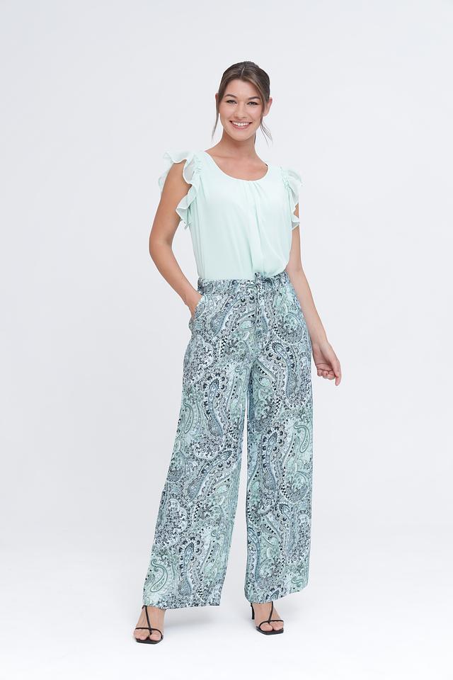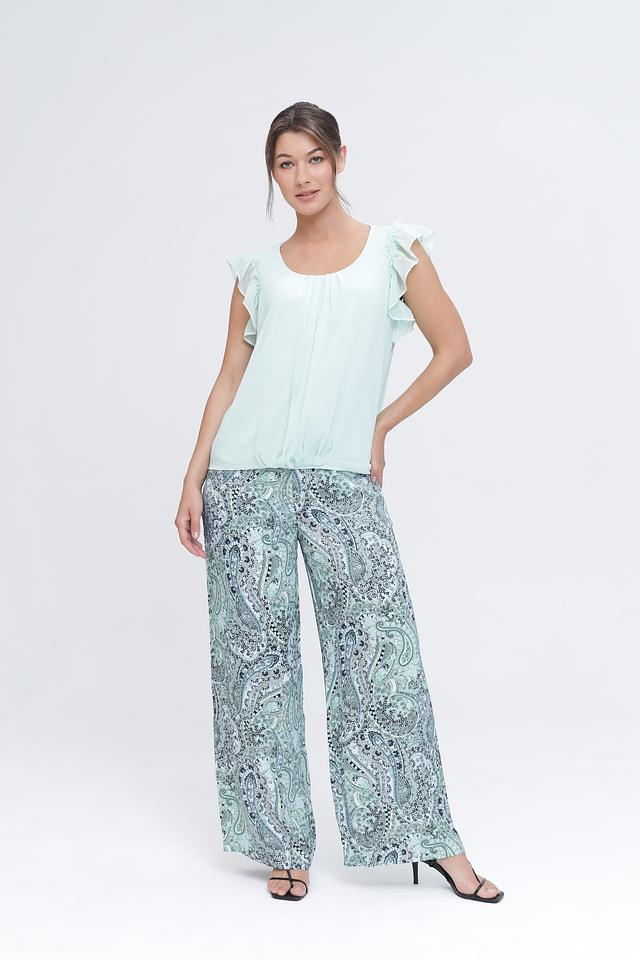 Мятная блуза Monari из 100% вискозы с короткими рукавами и воланами. Легкий и воздушный крой делает эту блузу идеальным выбором для создания нежного и романтичного образа. Состав: вискоза 100%