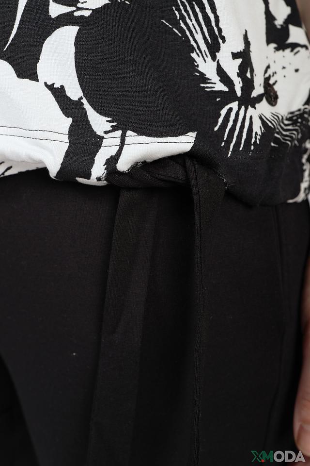 Основной цвет блузы – белый, но её украшает эффектный чёрно-белый цветочный принт, который придает ей особую изысканность. Благодаря сочетанию вискозы и эластана, блуза приятна к телу, хорошо драпируется и не мнется.