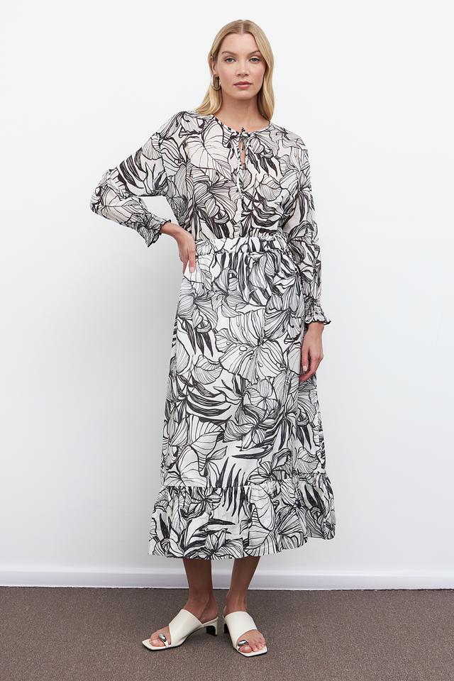 Эта блуза от Pezzo – отличный выбор для создания элегантного и непринужденного образа. Блуза выполнена в чёрно-белой цветовой гамме и украшена стильным принтом, изображающим листья.