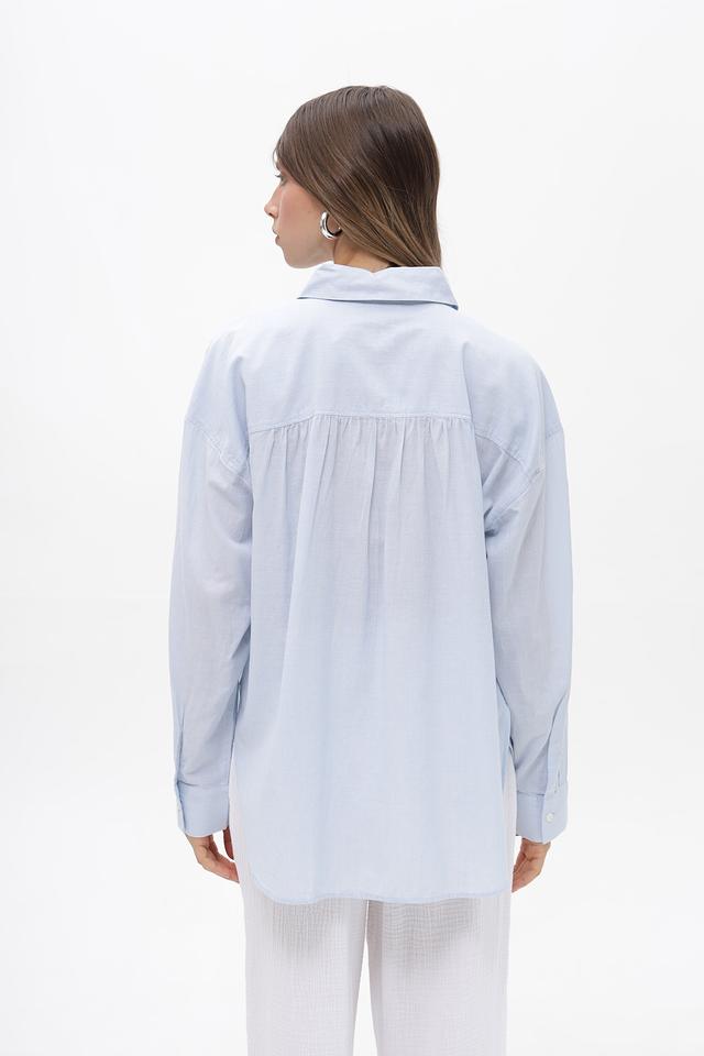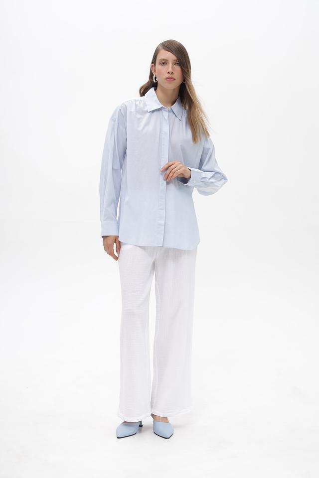 Преобладающий цвет блузы — нежный голубой, который легко сочетается с другими цветами в вашем гардеробе. Эта блуза станет отличным дополнением к вашему повседневному стилю.