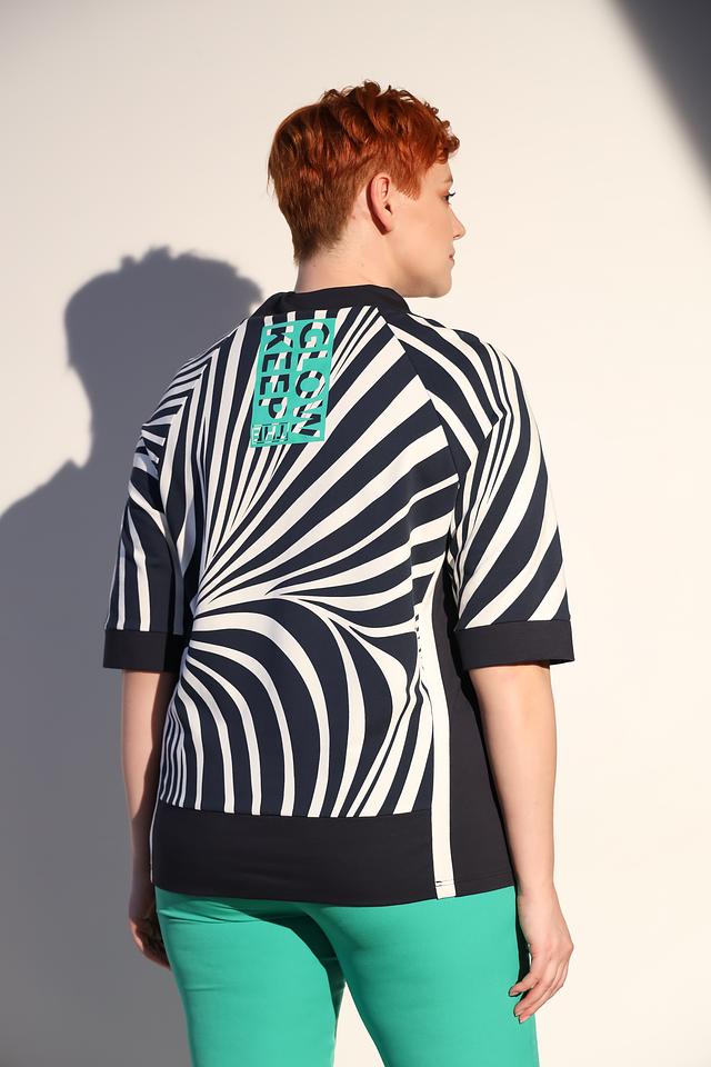 Эта блуза от Tuzzi станет ярким акцентом вашего образа. Выполнена в оригинальном дизайне с широкими полосами синего и белого цветов. Модель имеет свободный крой, который обеспечивает комфорт в носке.