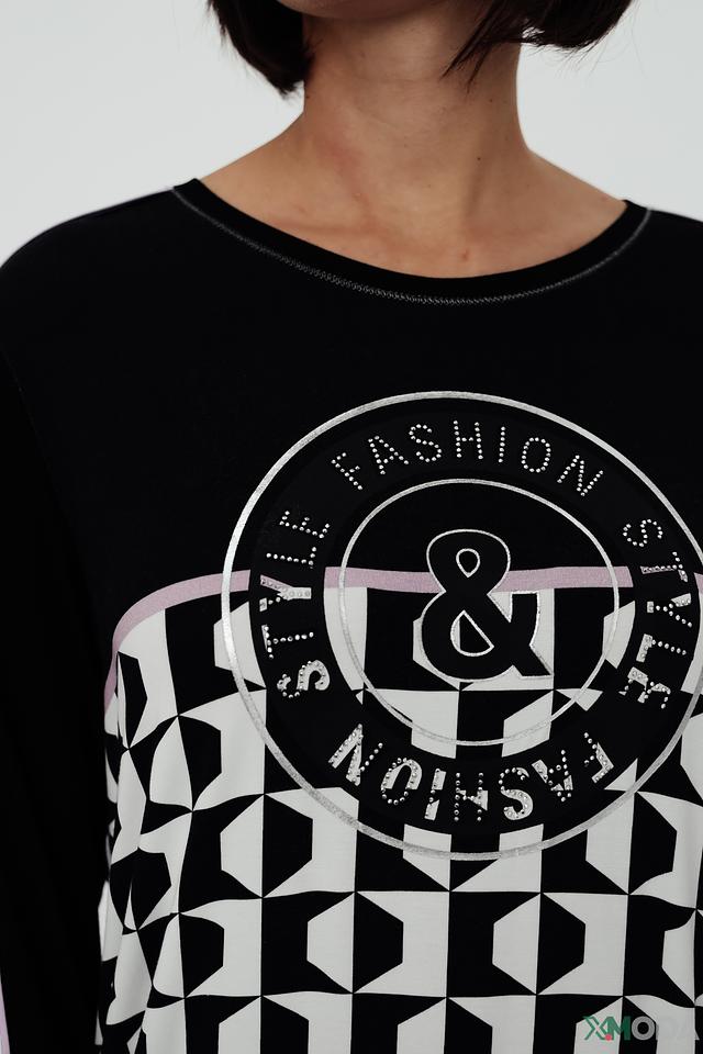 Эта стильная блуза от Tuzzi станет отличным дополнением к вашему гардеробу. Она выполнена в чёрном цвете и украшена ярким геометрическим принтом, который придает ей современный вид.