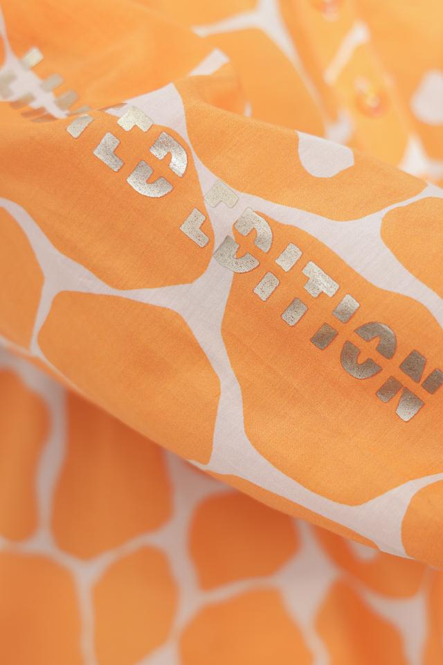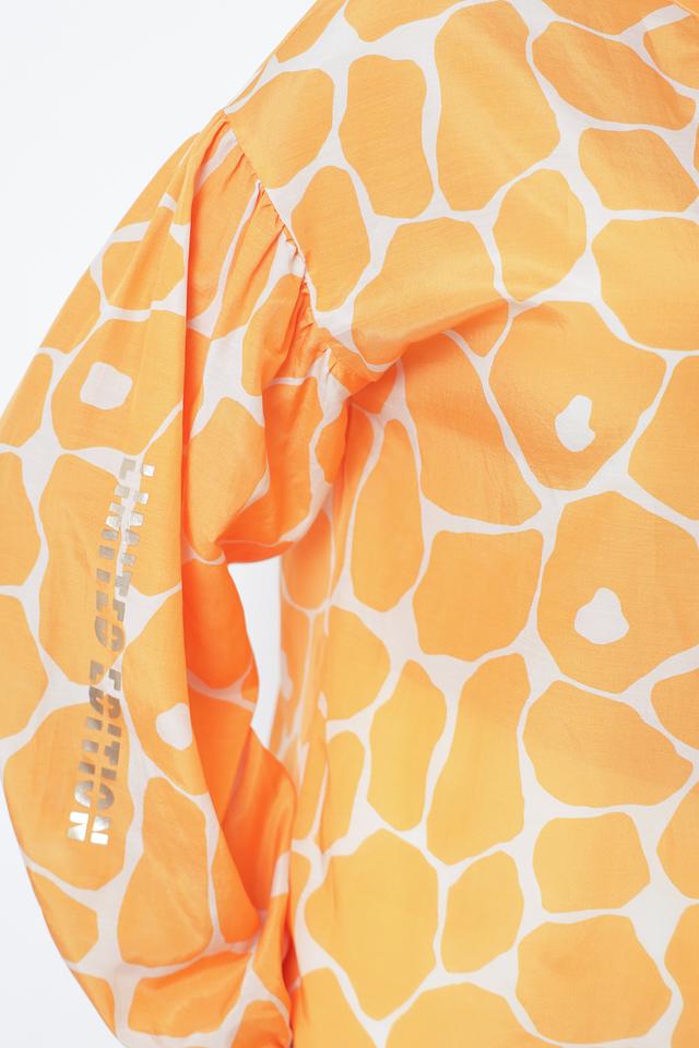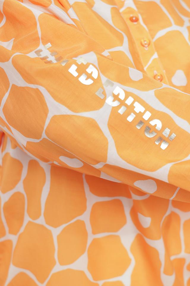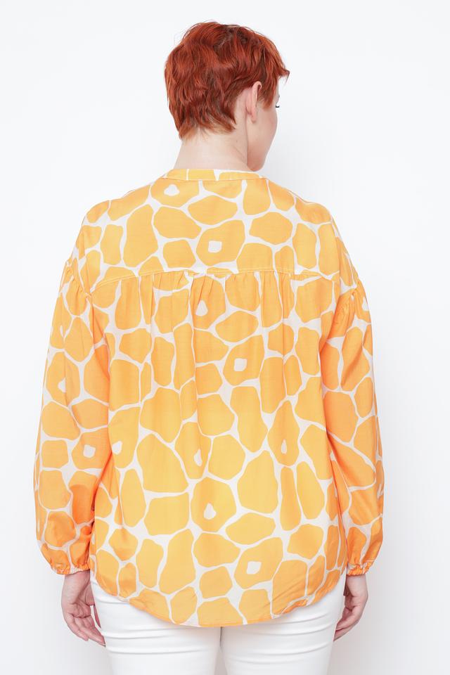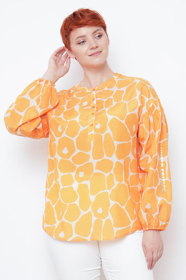 Эта блуза от Tuzzi станет отличным дополнением к вашему гардеробу. Она выполнена в оранжевом цвете с необычным принтом, напоминающим абстрактные пятна. Блуза имеет свободный крой, который обеспечивает комфорт в носке.