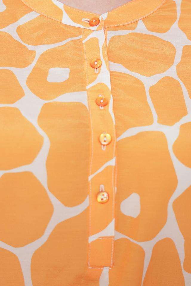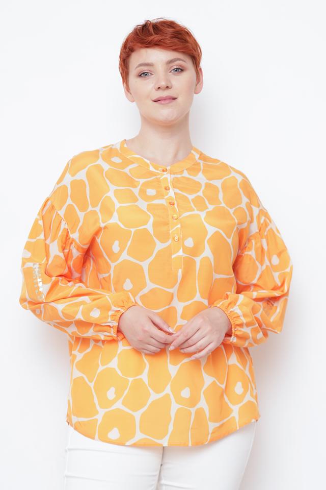 Оранжевая блуза Tuzzi с оригинальным принтом – стильное и комфортное решение для создания яркого образа. Модель выполнена из лёгкой ткани на основе хлопка и вискозы, имеет рукава с манжетами и застёжку на пуговицы. Состав: хлопок 60%, вискоза 40%
