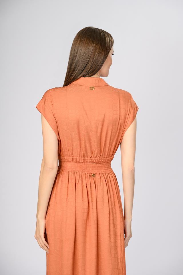 Оранжевая блуза Twin Set из 100% вискозы с укороченным кроем и оригинальным принтом в виде логотипа бренда. Модель с короткими рукавами и воротником-стойкой, застегивается на пуговицы. Состав: вискоза 100%
