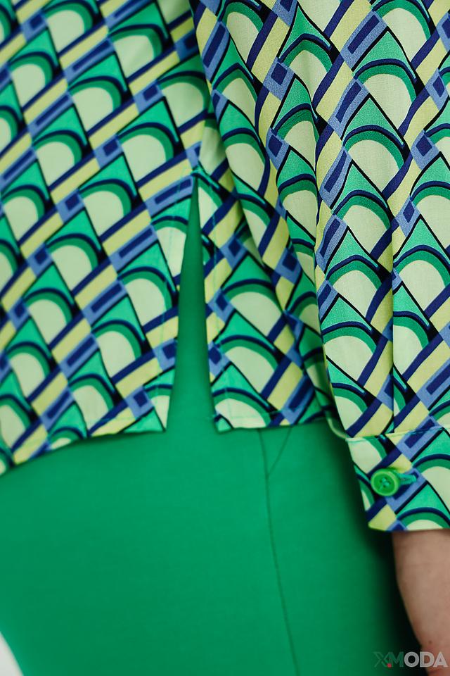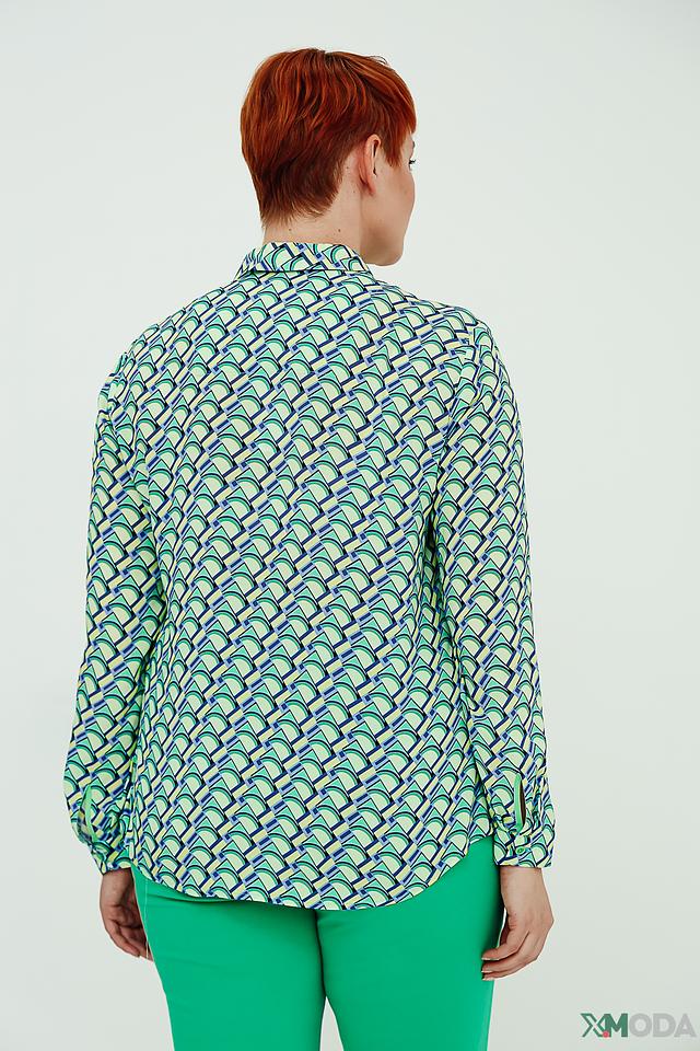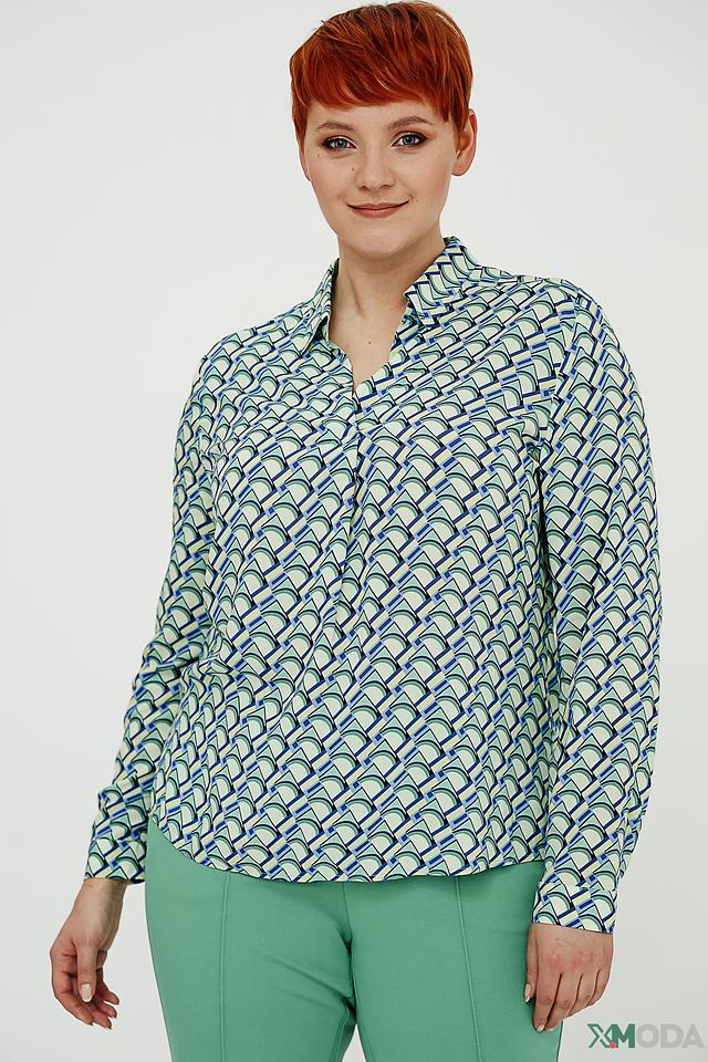 Женская рубашка Bianca светло-зелёного цвета с оригинальным геометрическим принтом. Модель с длинным рукавом и классическим воротником станет отличным дополнением к вашему гардеробу. Состав: вискоза 100%