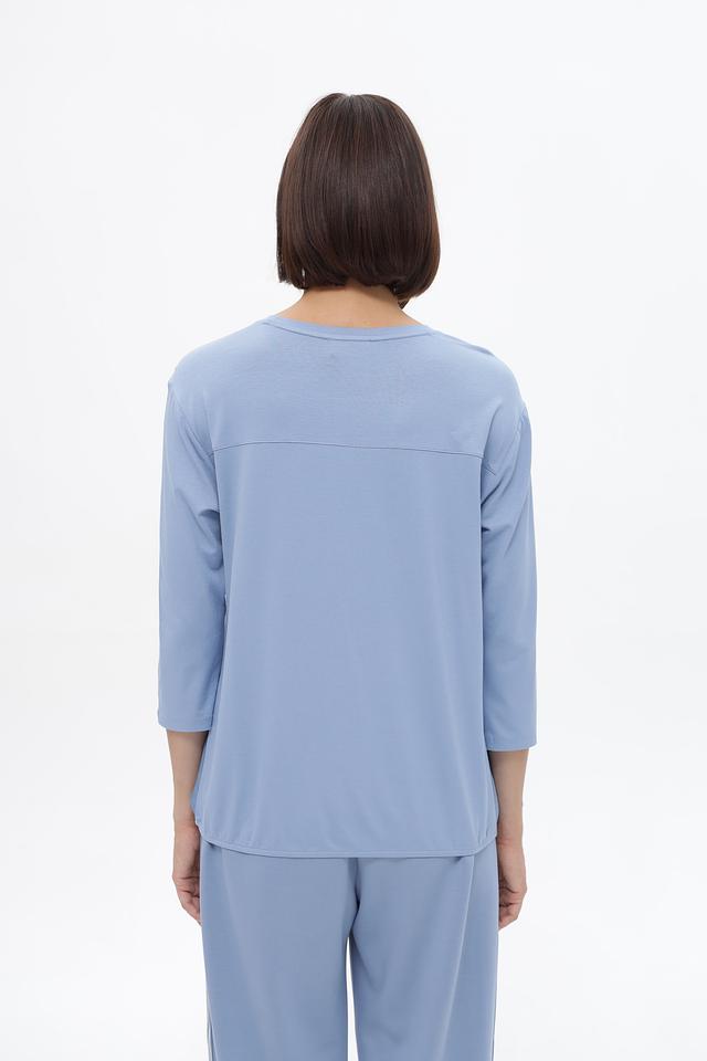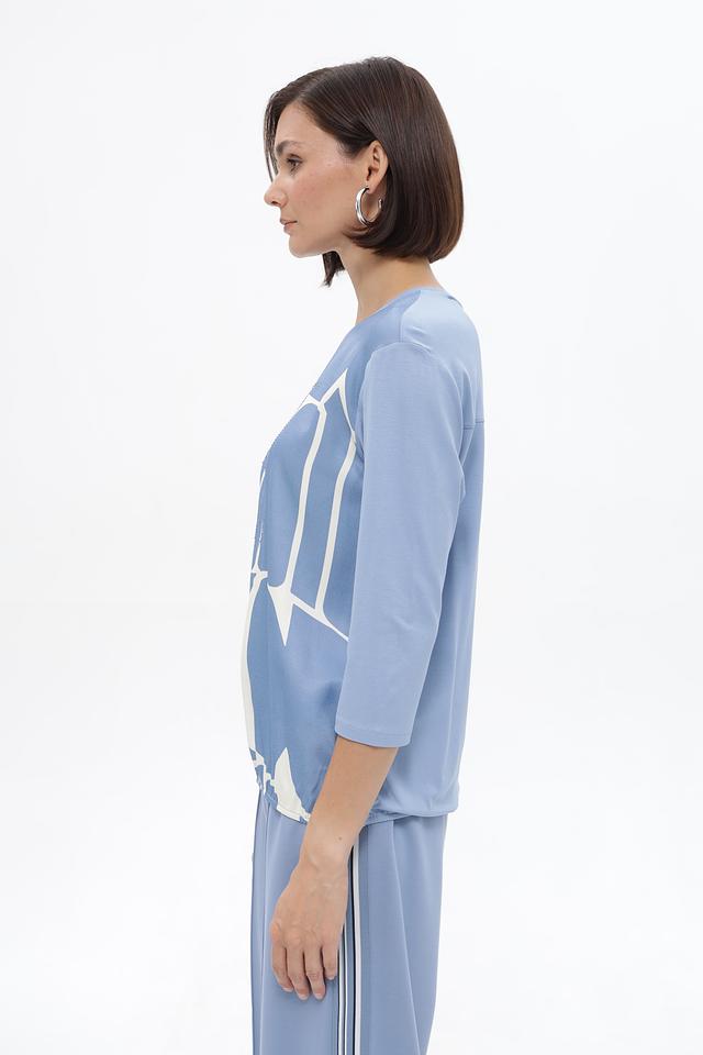 Голубая блузка Lecomte с оригинальным принтом станет стильным дополнением к вашему гардеробу. Изготовлена из мягкой вискозы, обеспечивающей комфорт в носке. Состав: вискоза 100%