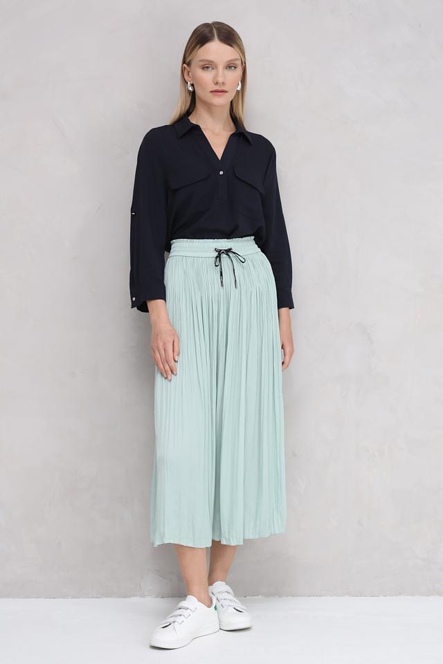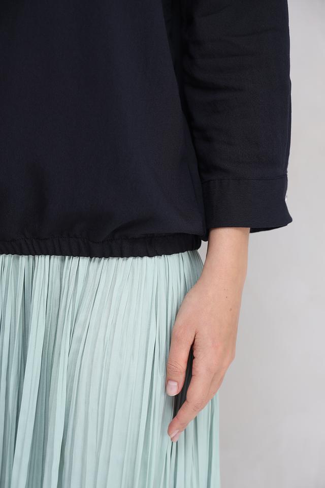 Состав ткани: 52% полиэстер и 48% вискоза. Эта комбинация обеспечивает блузе легкость, мягкость и приятные тактильные ощущения. Блуза проста в уходе и быстро сохнет.