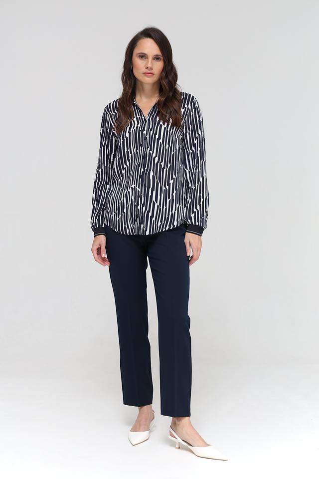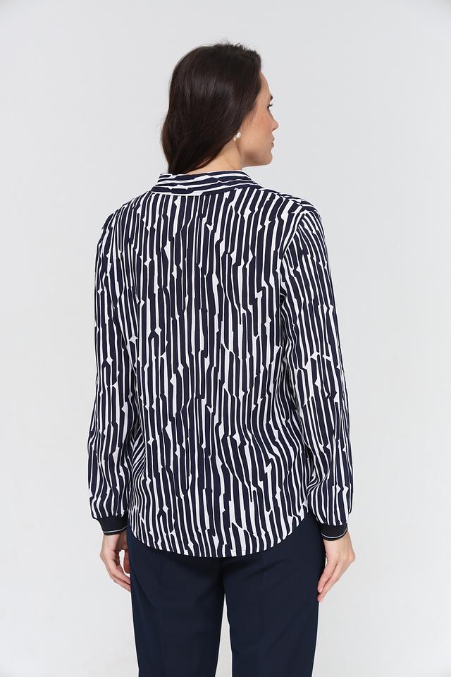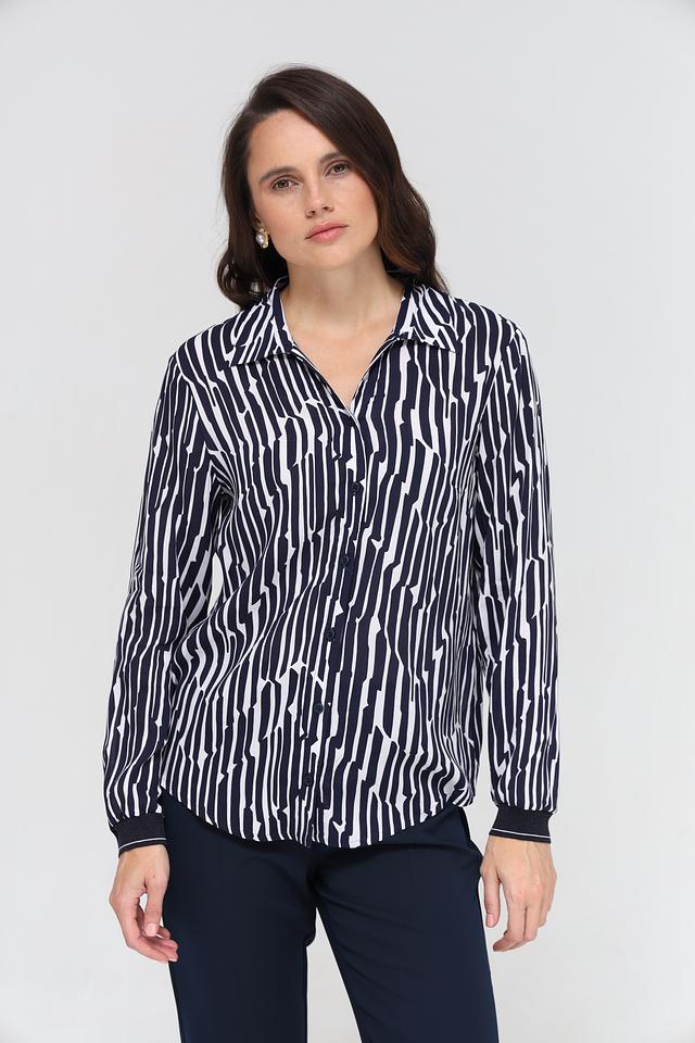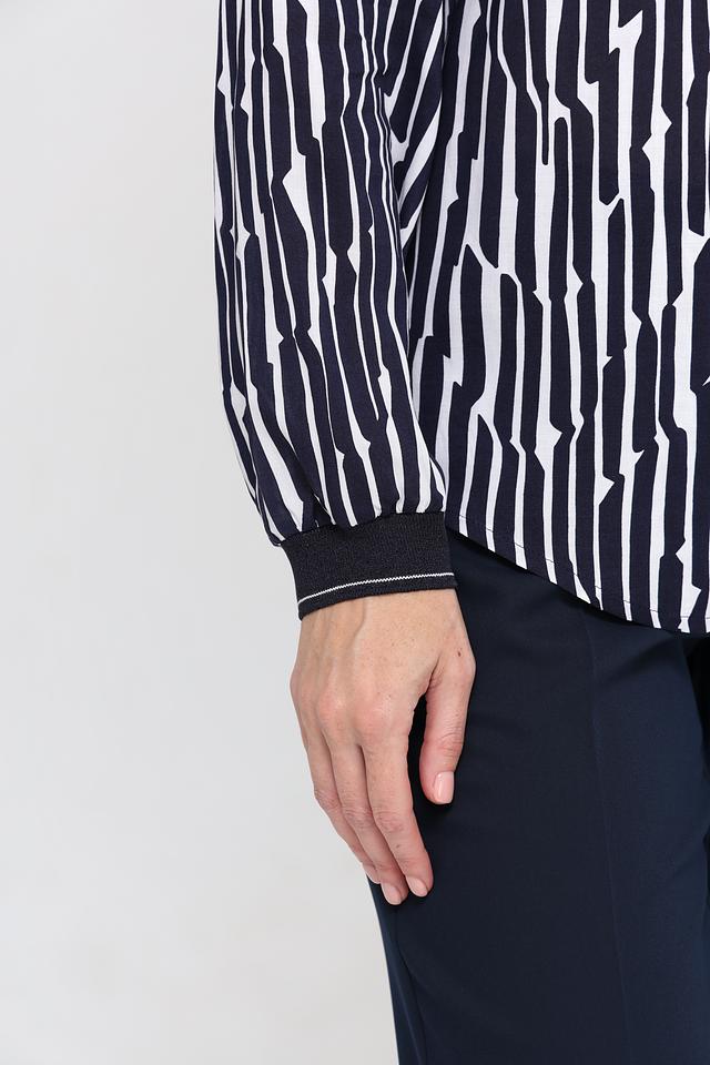Блуза Rabe collection синего цвета с оригинальным полосатым принтом. Модель с длинными рукавами и классическим воротником, выполнена из мягкой и приятной к телу вискозы. Состав: вискоза 100%