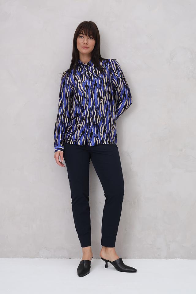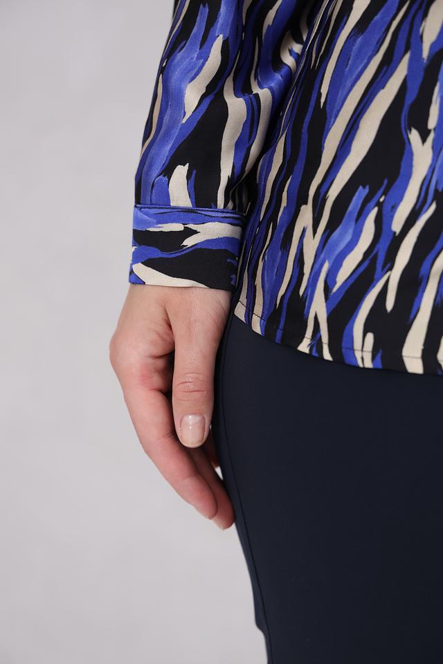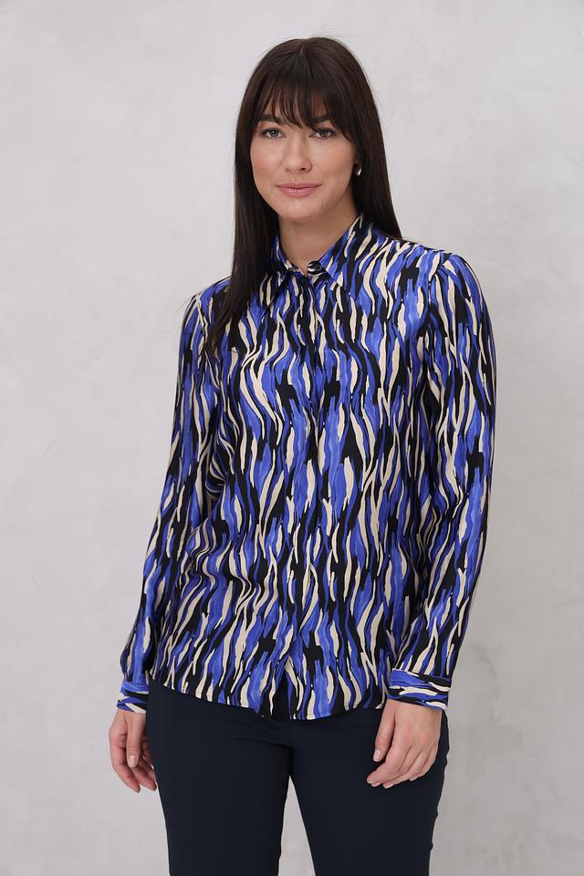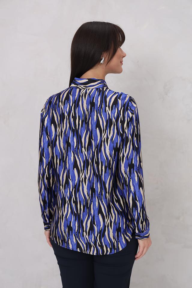 Женская рубашка Cinque синего цвета с оригинальным абстрактным принтом. Изготовлена из 100% вискозы, обеспечивающей комфорт и приятные ощущения при носке. Стильное решение для создания яркого и запоминающегося образа. Состав: вискоза 100%