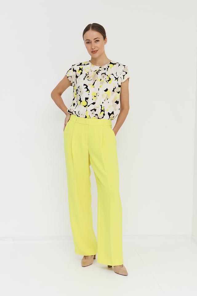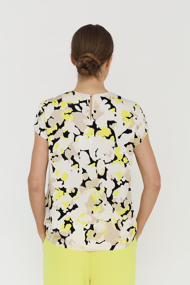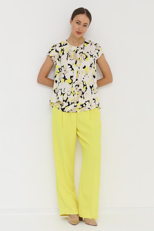 Особенностью данной модели является яркий и необычный принт, сочетающий в себе оттенки бежевого, жёлтого и чёрного. Эта блуза станет ярким акцентом в вашем образе и подчеркнёт вашу индивидуальность.
