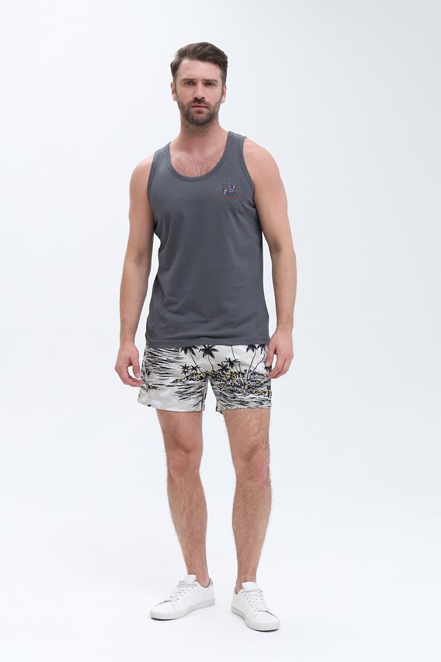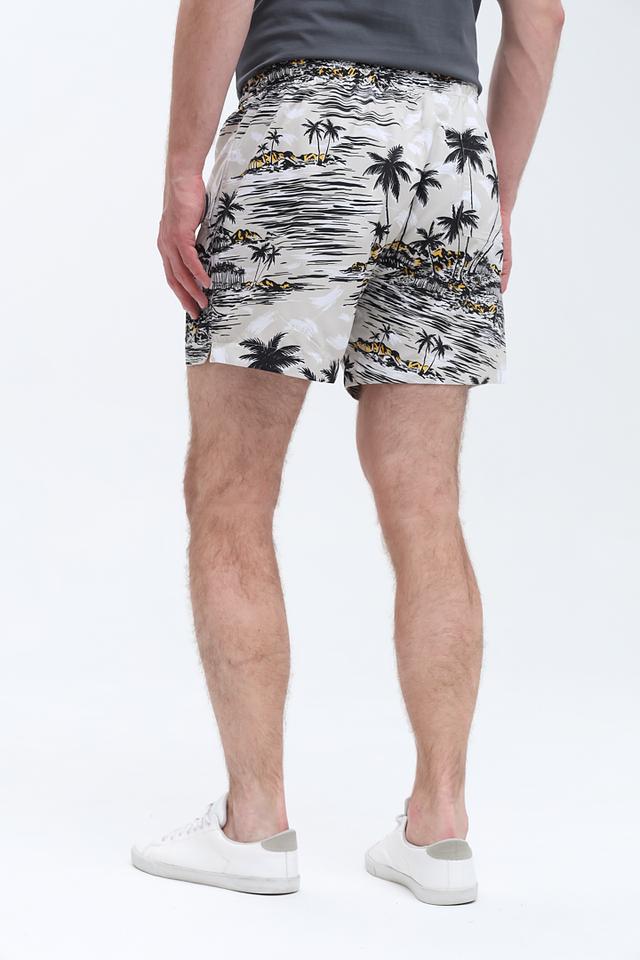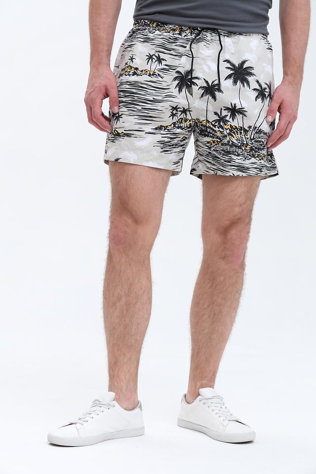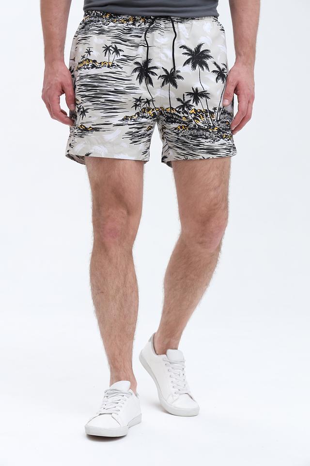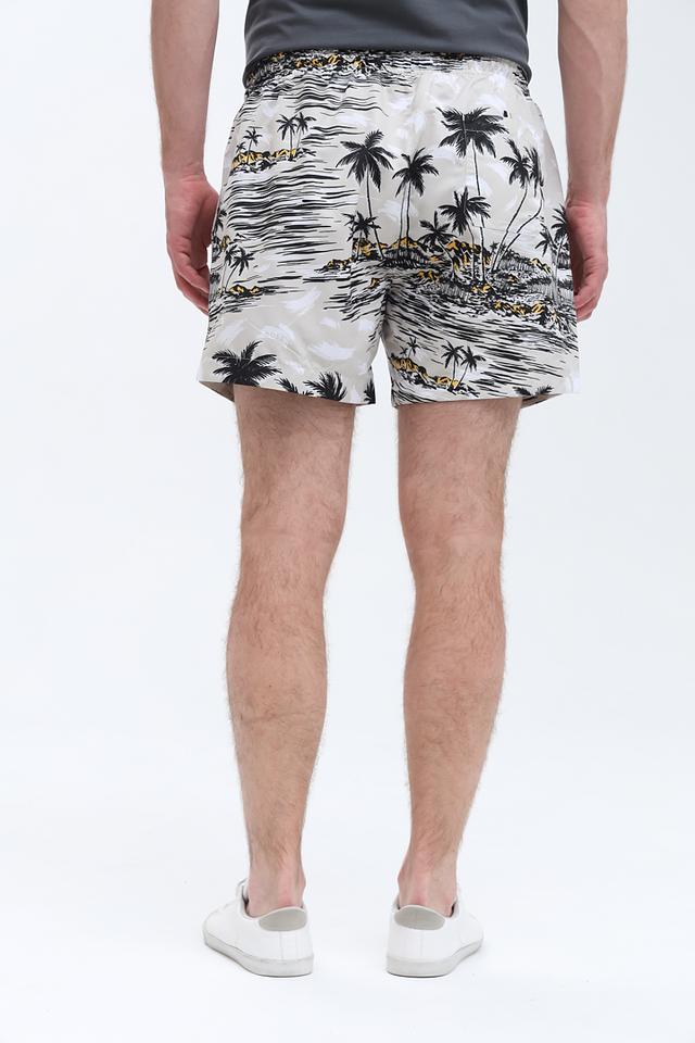 Представляем стильные мужские плавки от бренда Boss Black. Модель выполнена в бежевом цвете и украшена эффектным тропическим принтом с изображением пальм и морского пейзажа.