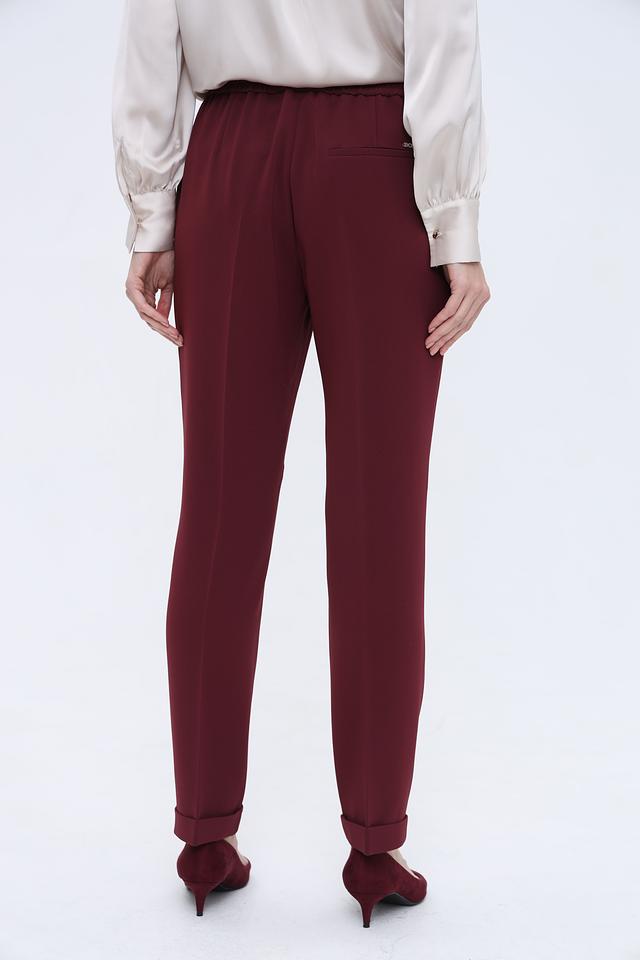 Брюки от Boss Black бордового цвета – элегантная модель с завязками на талии и укороченным силуэтом. Изготовлены из высококачественного триацетата и полиэстера, обеспечивающих комфорт и долговечность. Состав: триацетат 69%, полиэстер 31%