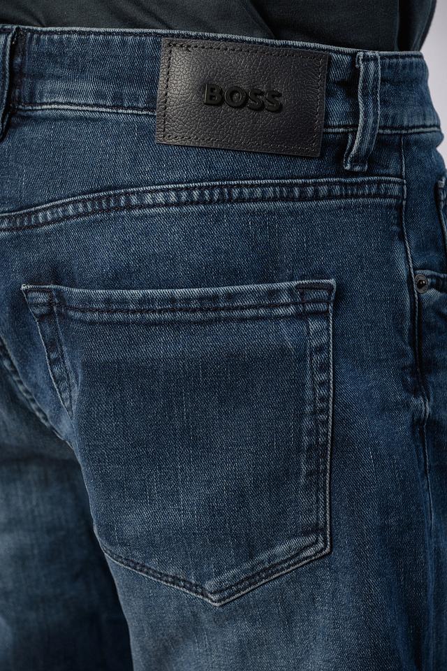 Мужские джинсы Boss Black классического синего цвета в стиле regular fit. Модель выполнена из качественного хлопка с добавлением эластана для комфорта и свободы движений. Стильный и универсальный вариант для повседневного образа. Состав: хлопок 92%, эластан 8%