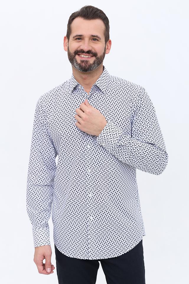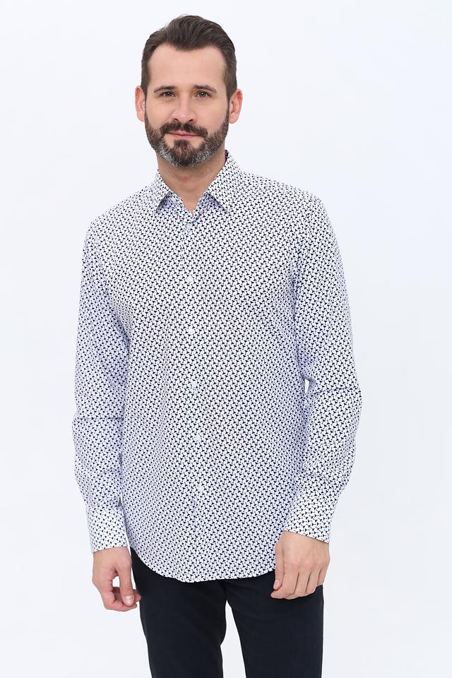 Мужская рубашка Boss Black белого цвета с оригинальным принтом. Классический крой и состав из хлопка с добавлением эластана обеспечивают комфорт и удобство в носке. Состав: хлопок 96%, эластан 4%