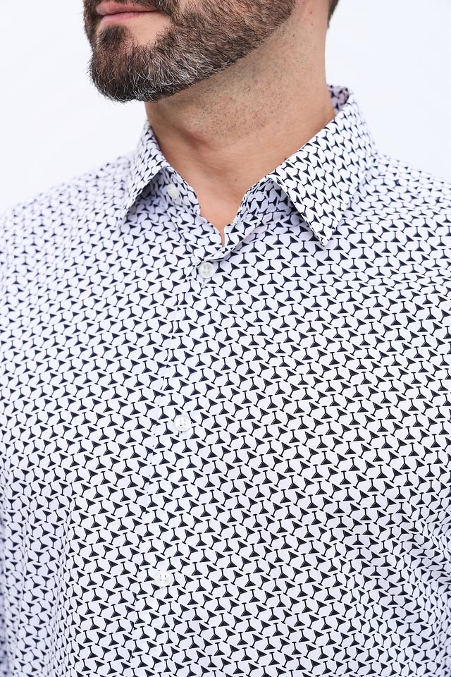 Эта рубашка от Boss Black станет отличным дополнением к вашему гардеробу. Выполнена в белом цвете и украшена стильным геометрическим принтом в тёмно-синих тонах.