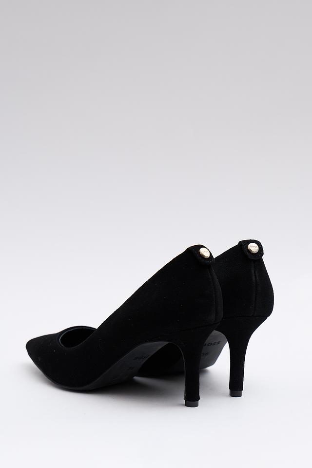 Лодочки Boss Black идеально подойдут для создания как деловых, так и вечерних образов. Они прекрасно сочетаются с юбками, платьями и брюками. Декоративные элементы в виде золотистых заклепок на заднике добавляют изысканности и подчеркивают статусность бренда.