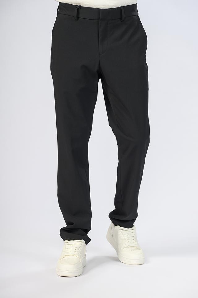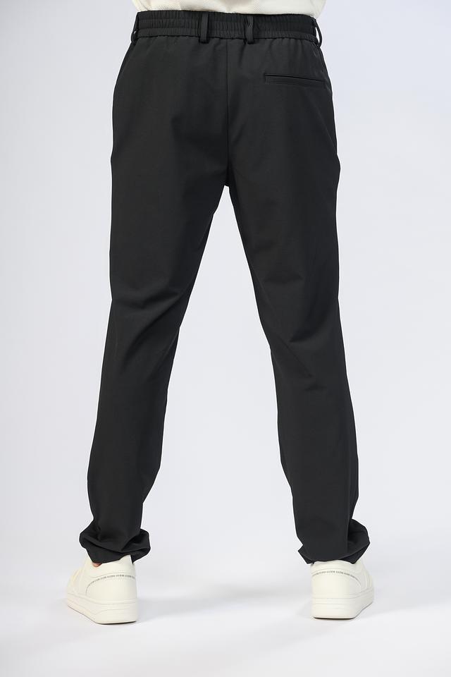 Чёрные брюки от Boss Black из полиэстера с эластаном. Модель прямого кроя с эластичным поясом и боковыми карманами. Состав: полиэстер 85%, эластан 15%
