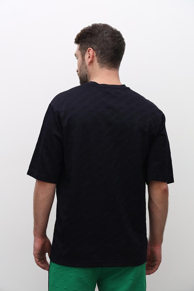 Чёрная футболка Boss Green из 100% полиэстера с текстурированным узором и логотипом бренда. Стильный и комфортный выбор для повседневного гардероба. Состав: полиэстер 100%