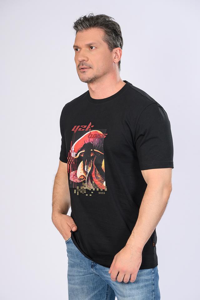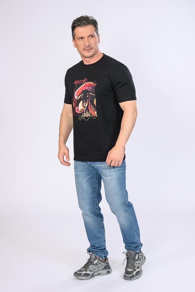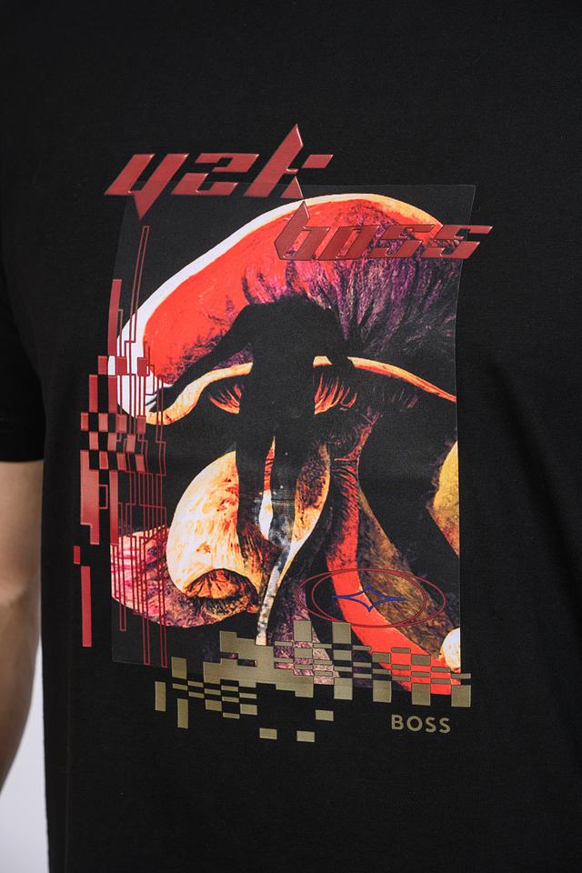 Мужская футболка Boss Orange чёрного цвета с ярким принтом гриба. Изготовлена из 100% хлопка, обеспечивающего комфорт и воздухопроницаемость. Стильный дизайн и высокое качество материалов делают эту футболку отличным выбором для повседневного гардероба. Состав: хлопок 100%