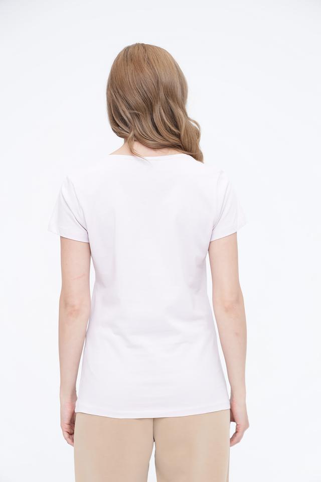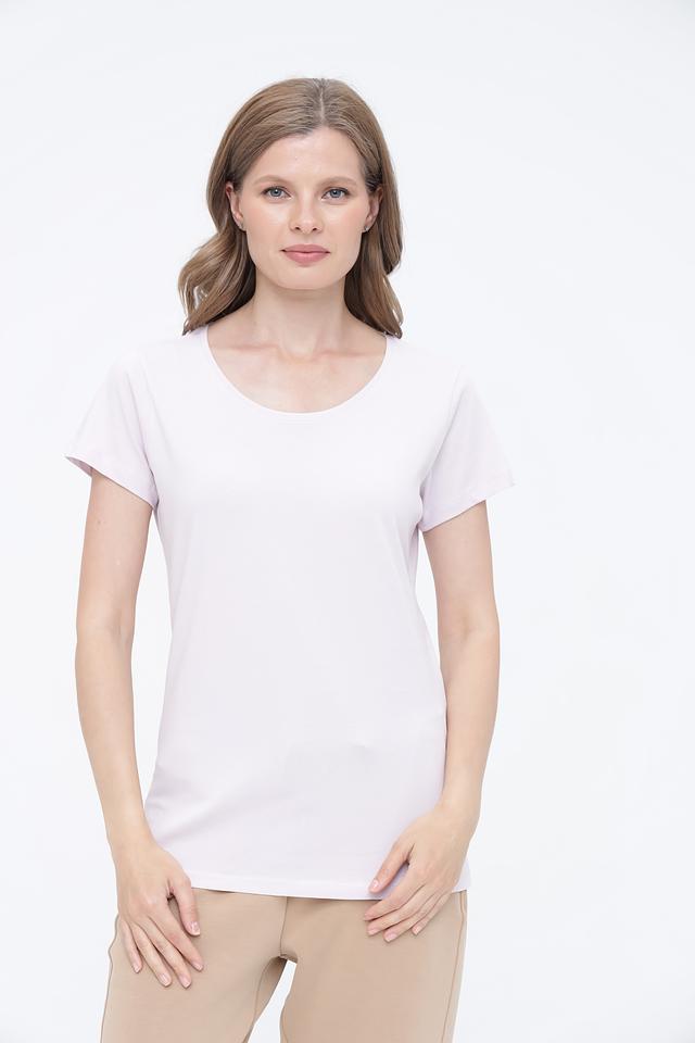 Футболка имеет прямой крой, который подходит для любой фигуры. Круглый вырез горловины делает ее универсальной и подходящей для различных стилей. Нежный лавандовый цвет добавит вашему образу легкости и свежести.