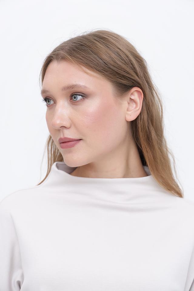 Бежевый пуловер от Broadway с рукавом 3/4 и воротником-стойкой. Изготовлен из мягкой и приятной к телу ткани с добавлением вискозы и эластана, обеспечивающих комфорт и свободу движений. Состав: полиэстер 49%, вискоза 43%, эластан 8%