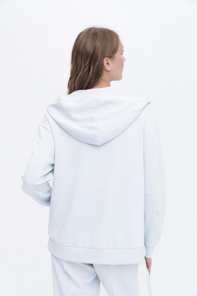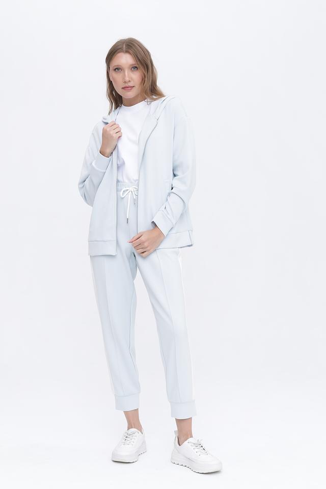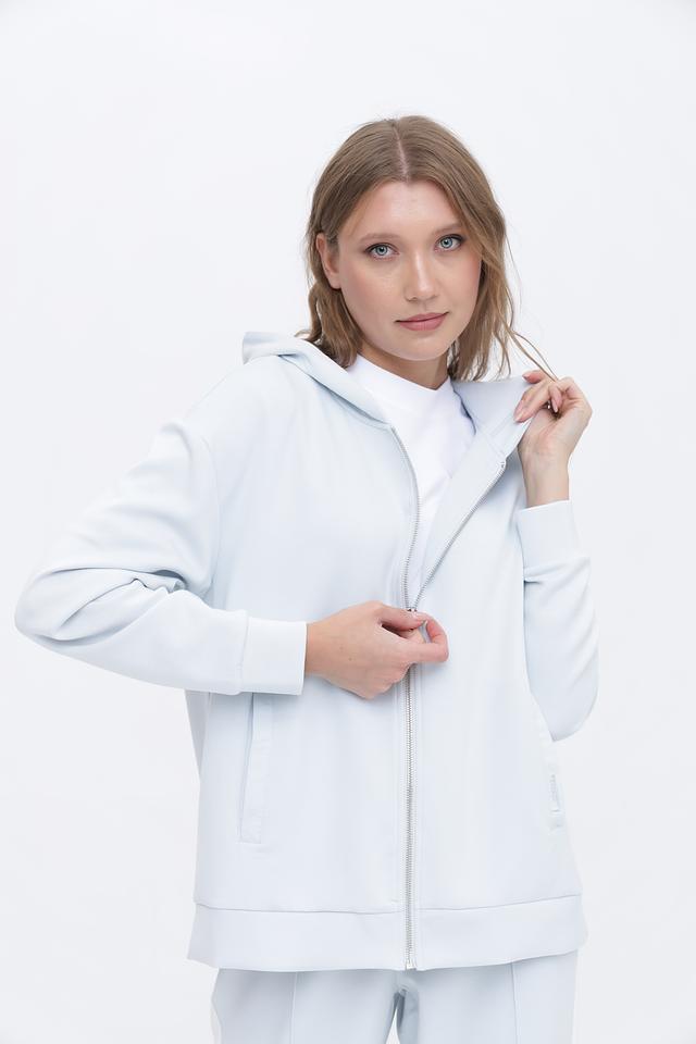 Женская толстовка Broadway голубого цвета с застёжкой-молнией и капюшоном. Модель выполнена из мягкого трикотажа с добавлением вискозы и эластана, обеспечивающего комфорт и свободу движений. Идеально подходит для создания повседневных образов. Состав: полиэстер 49%, вискоза 43%, эластан 8%