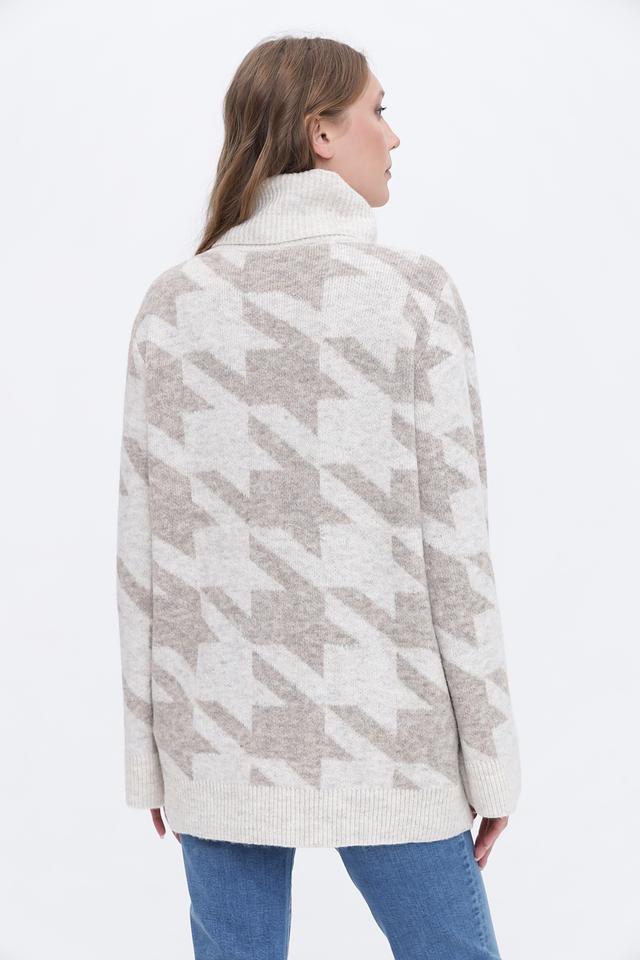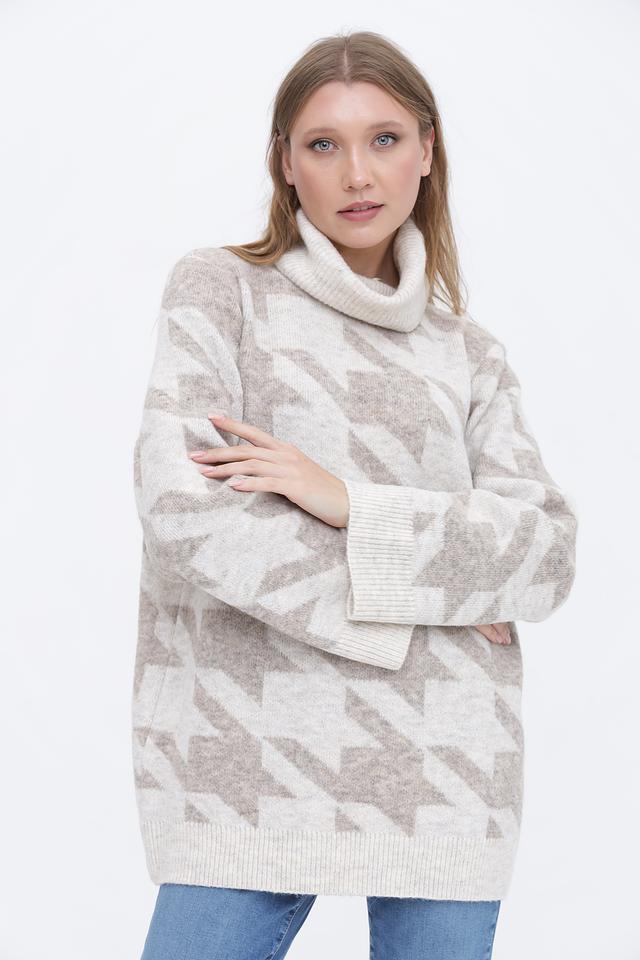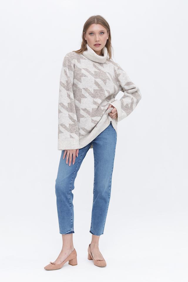 Бежевый пуловер от Broadway с актуальным клетчатым принтом и высоким воротником-стойкой. Изготовлен из мягкого и приятного к телу сочетания полиэстера, полиамида и шерсти, обеспечивающего комфорт и тепло. Состав: полиэстер 76%, полиамид 15%, шерсть 6%, эластан 3%