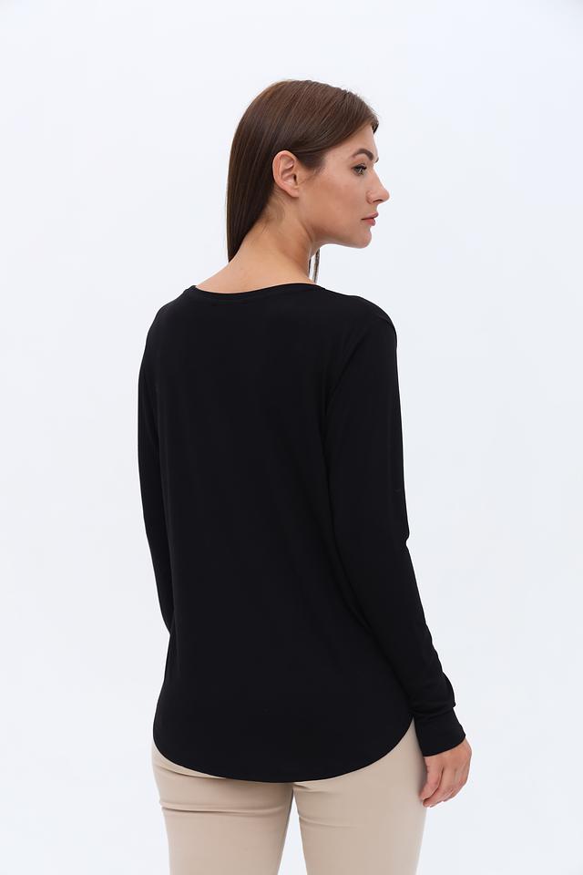 Чёрный лонгслив от Broadway с оригинальным принтом на лицевой стороне. Изготовлен из мягкой и приятной к телу ткани с добавлением вискозы, полиэстера и эластана, обеспечивающей комфорт при носке. Состав: вискоза 50%, полиэстер 45%, эластан 5%