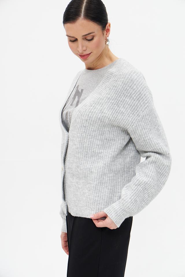 Серый вязаный жакет от Broadway – это стильное и комфортное решение для создания уютных образов. Модель выполнена из мягкого трикотажа с V-образным вырезом и застёжкой на пуговицы. Состав: полиэстер 54%, акрил 38%, шерсть 5%, спандекс 3%