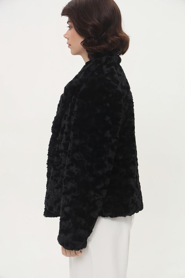 Чёрная куртка от Broadway выполнена из мягкого искусственного меха. Модель имеет отложной воротник и застёжку на скрытые кнопки, что придает ей элегантный и современный вид. Состав: полиэстер 100%