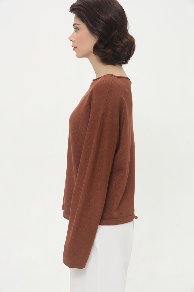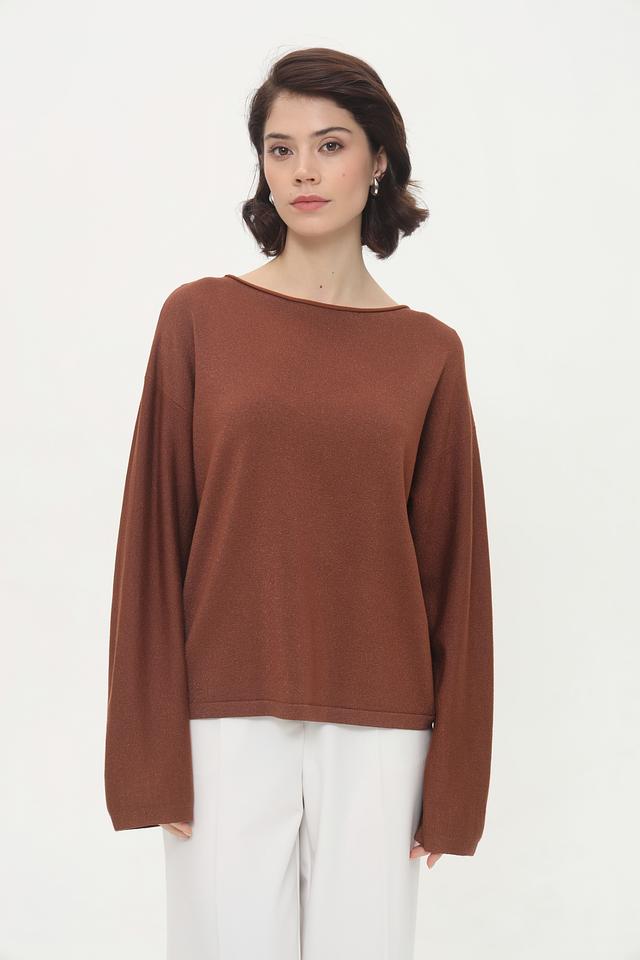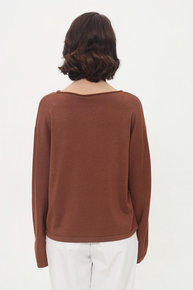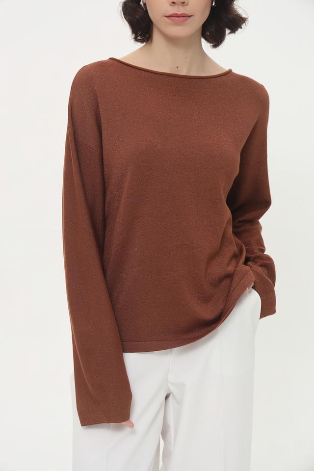 Терракотовый пуловер от Broadway – это стильная и комфортная модель с округлым вырезом горловины и рукавами средней длины. Изготовлен из мягкой вискозы с добавлением полиамида и металлизированной нити, что придает изделию деликатный блеск. Состав: вискоза 61%, полиамид 27%, метализ.нить 12%