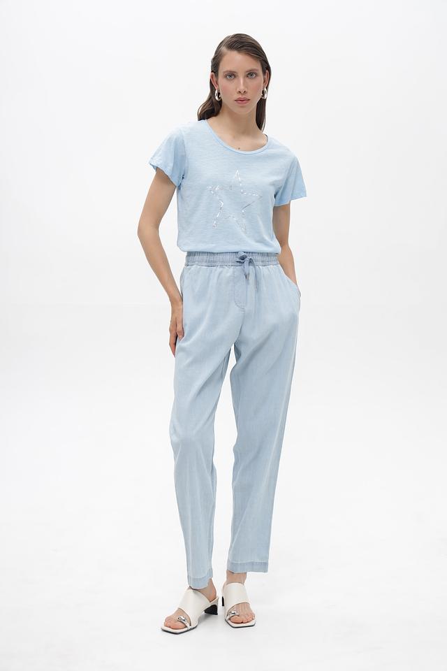 Женская футболка Broadway голубого цвета с декоративной звездой — стильная и комфортная модель из 100% хлопка. Футболка имеет свободный крой и короткие рукава, идеально подходит для повседневной носки. Состав: хлопок 100%