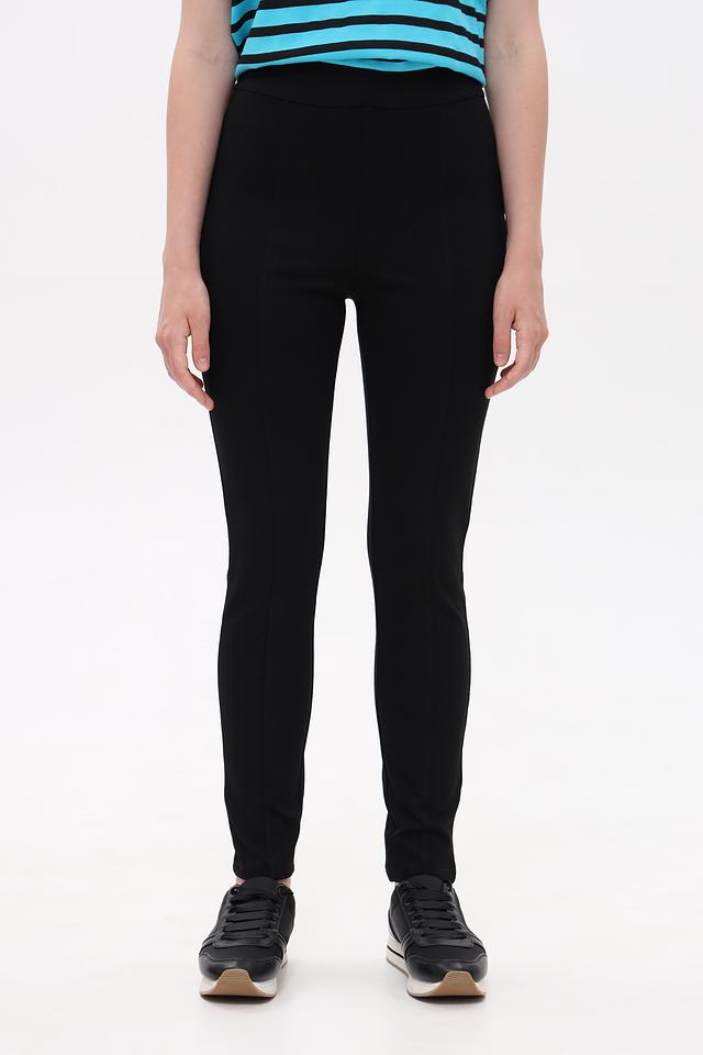 Брюки имеют прямой крой и стандартную посадку по фигуре. Высокая посадка подчеркивает талию и создает силуэт. Ткань, состоящая из вискозы, полиамида и эластана, приятна к телу, хорошо тянется и не мнется.