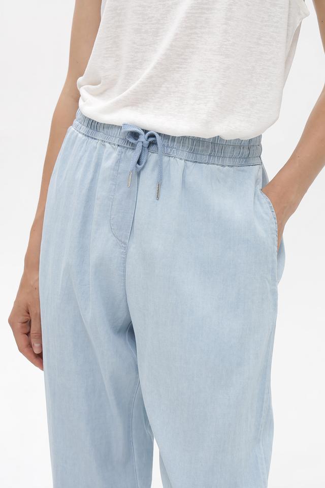 Женские джинсы Broadway голубого цвета — это удобная и стильная модель с эластичным поясом и завязками. Изготовлены из мягкого и приятного к телу сочетания лиоцела и хлопка. Состав: лиоцел 65%, хлопок 35%