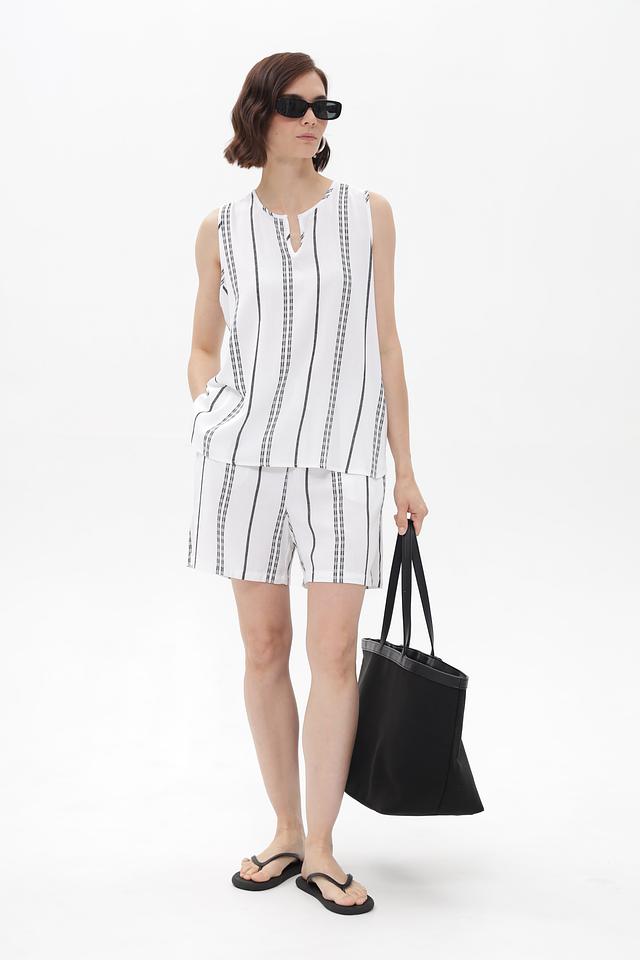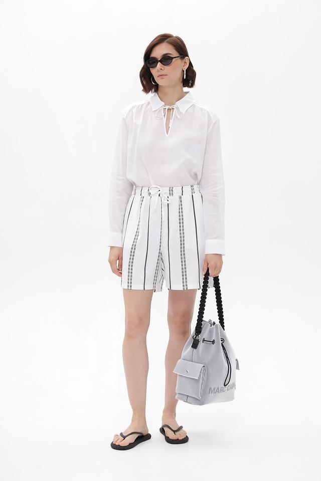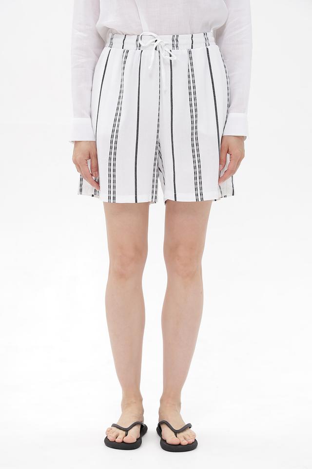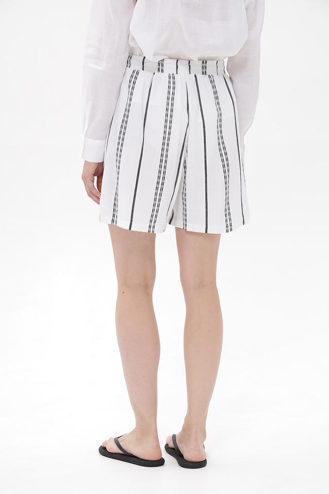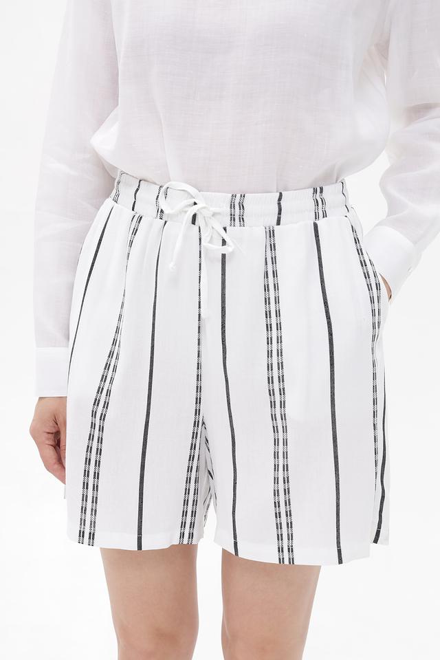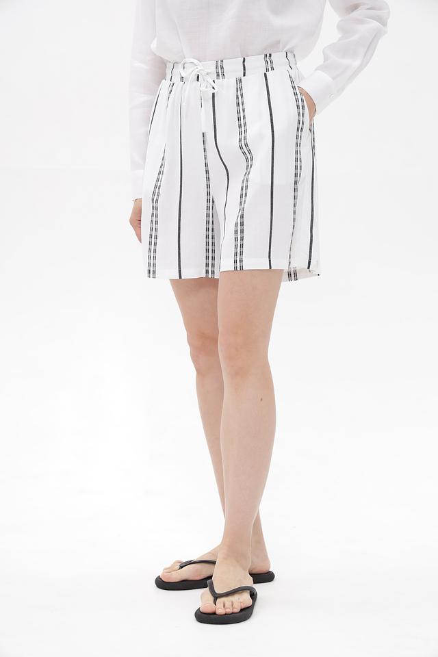 Белые шорты Broadway с вертикальной полоской. Выполнены из мягкой вискозы с добавлением льна и хлопка, обеспечивающих комфорт в жаркую погоду. Удобная посадка на эластичном поясе со шнурком. Состав: вискоза 83%, лен 12%, хлопок 5%
