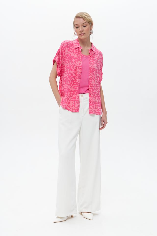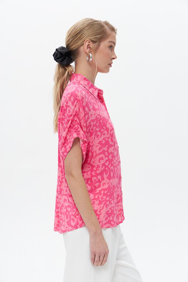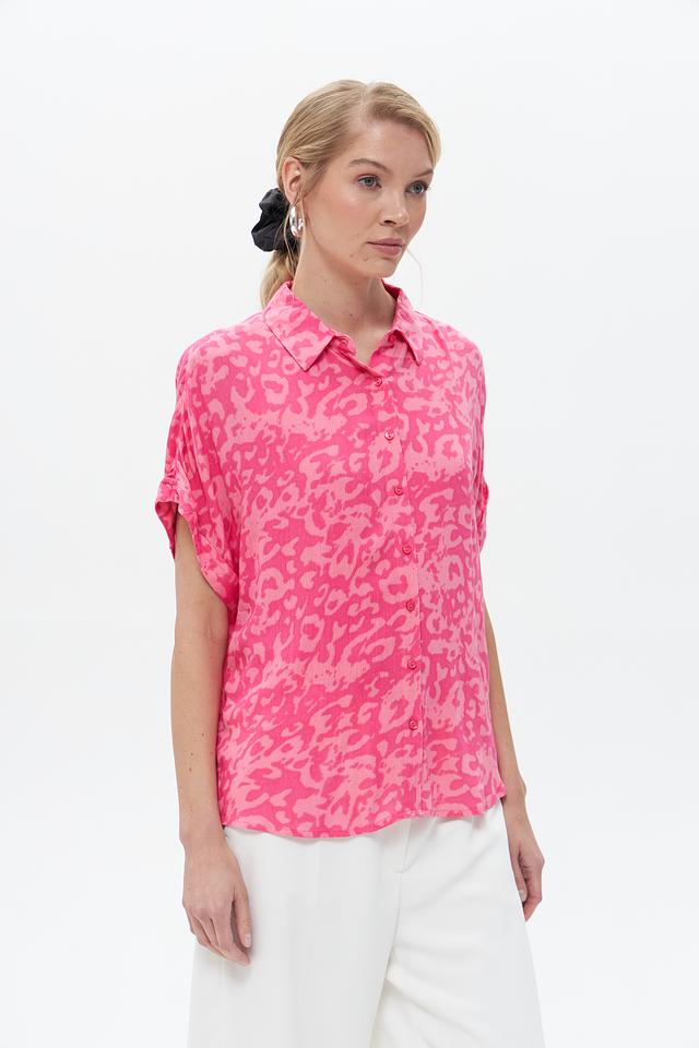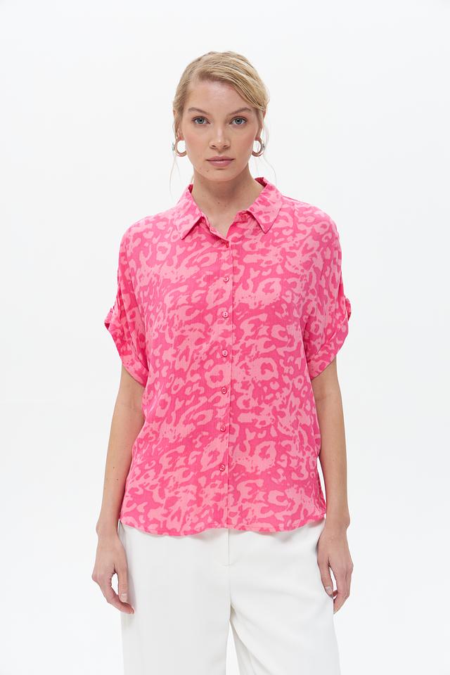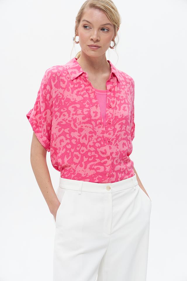 Эта блузка от Broadway станет ярким акцентом в вашем гардеробе. Выполнена в насыщенном фуксиевом цвете с эффектным леопардовым принтом, который придаёт образу динамичность и индивидуальность.