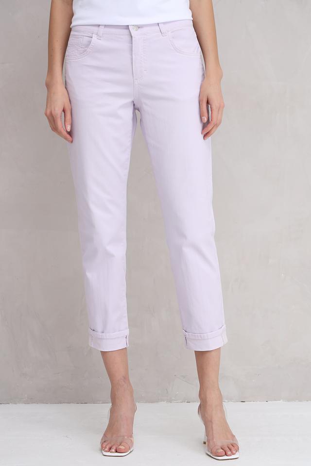 Женские брюки Angels нежного лавандового цвета — это стильное и комфортное решение для создания повседневных образов. Укороченный крой и эластичный состав обеспечивают удобную посадку и свободу движений. Состав: хлопок 98%, эластан 2%