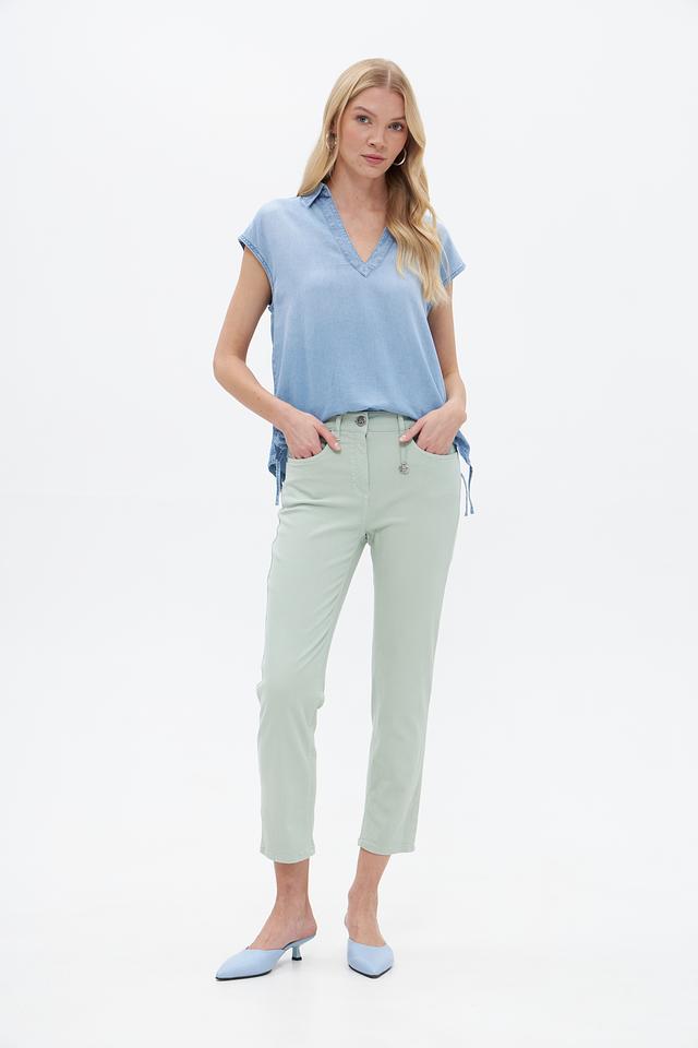 Представляем укороченные брюки от бренда Anna Montana. Модель выполнена в нежном мятном оттенке, идеально подходящем для создания весенних и летних образов.