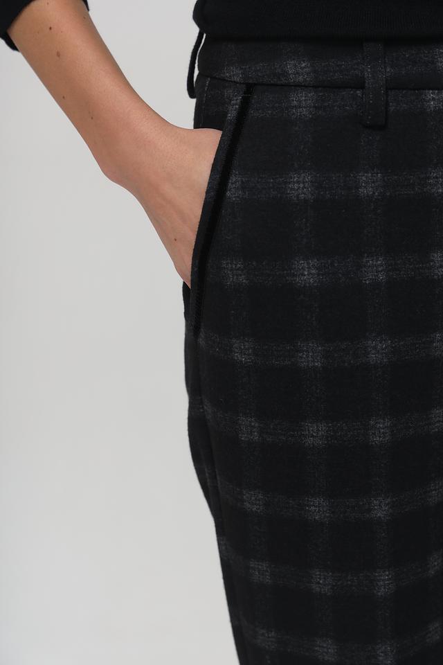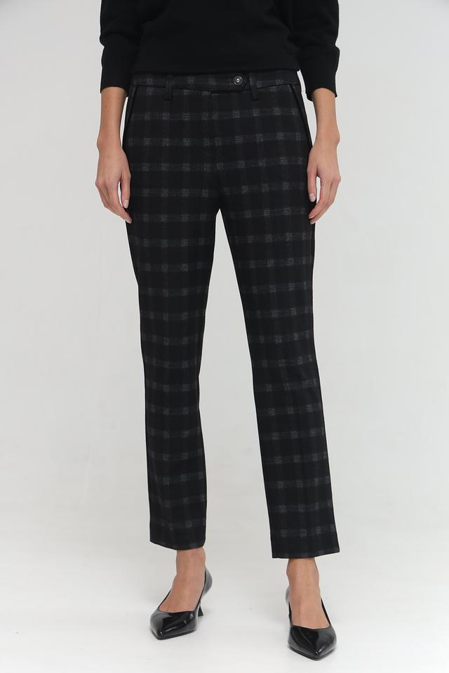 Представляем вашему вниманию элегантные брюки от бренда Anna Montana. Эта модель выполнена в графитовом цвете и украшена стильным геометрическим принтом в виде клетки.